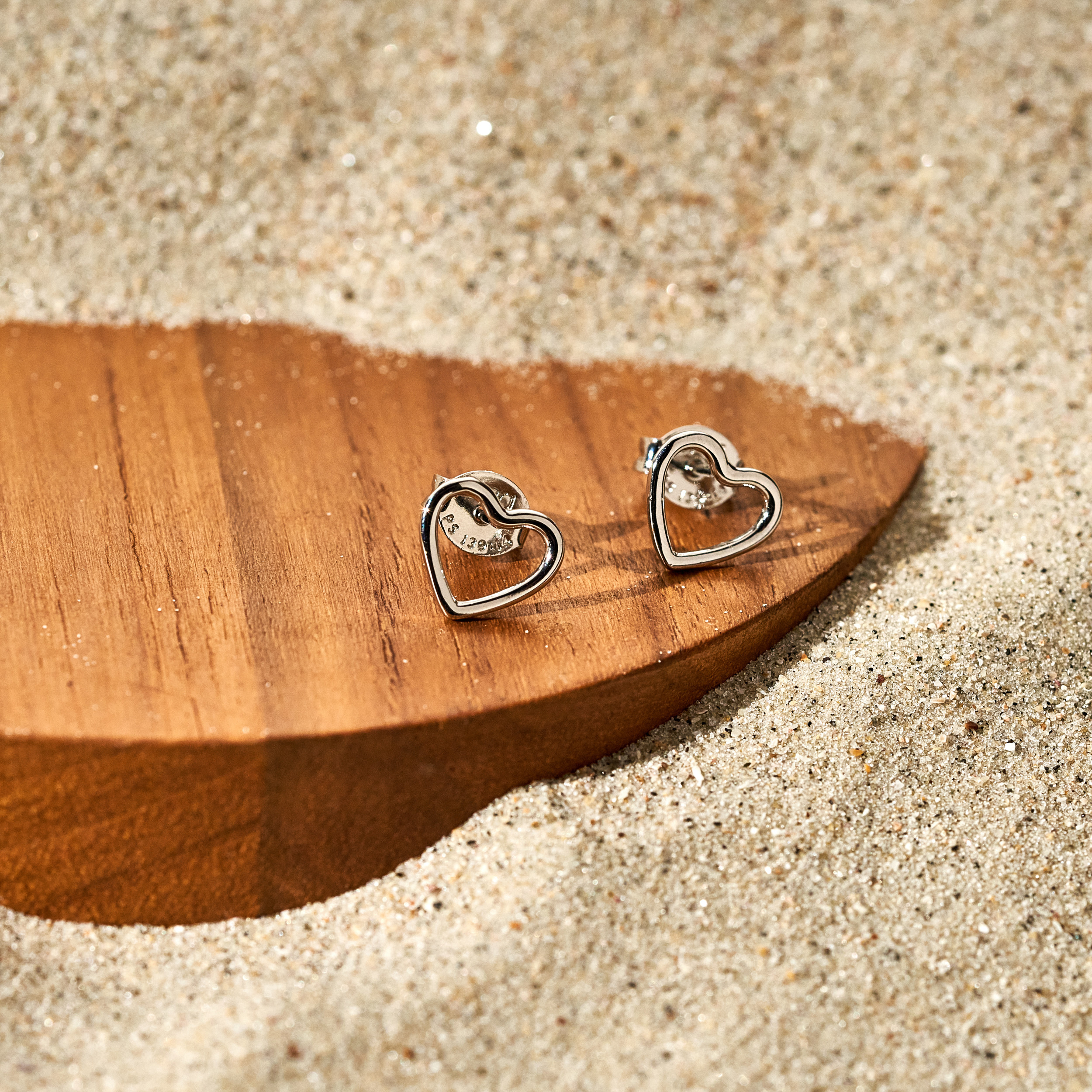 Brinco Isolda delicado com base de coração vazado. Tarraxa personalizada (Una - Ps 139:14). Banhado em ródio branco, com verniz antialérgico e níquel free.