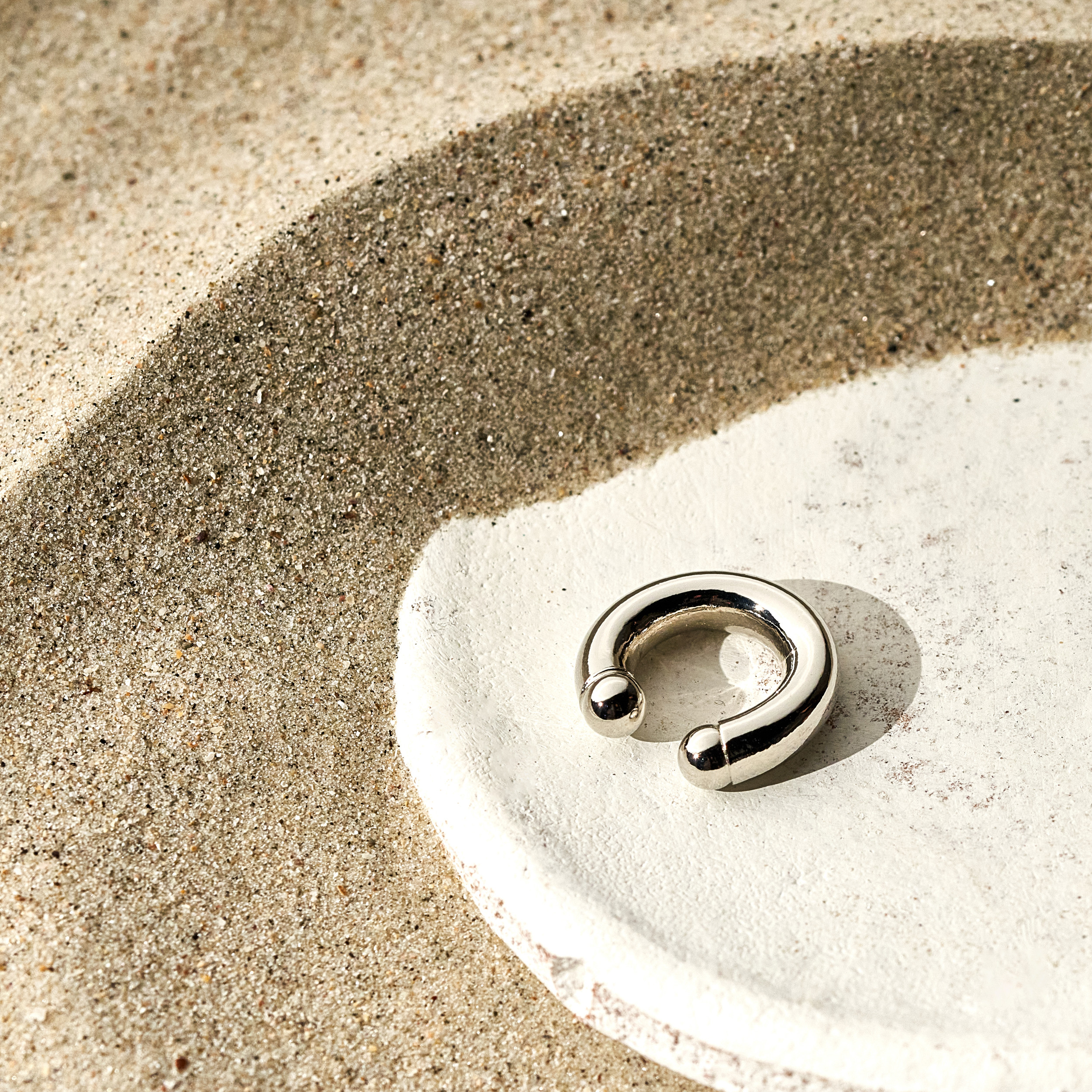 O piercing Ataide é um modelo de encaixe, composto por um cilindro de diâmetro largo e pequenas semiesferas em suas pontas. Os piercings de encaixe são conhecidos por sua praticidade, pois não é preciso ter furo na orelha para usá-los. Peça banhada em ródio branco, recebeu camada de verniz antialérgico e não possui níquel na composição.