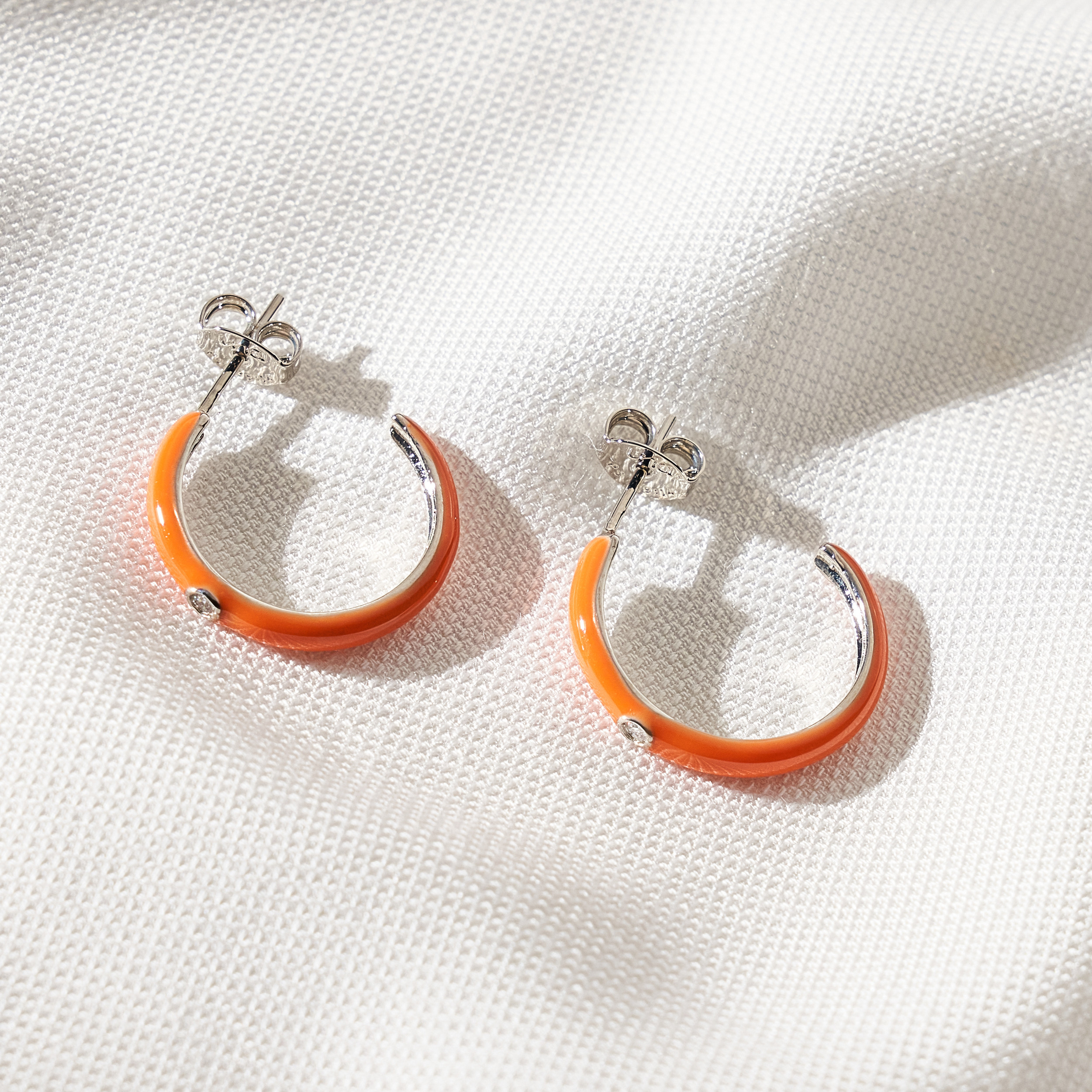 Brinco Ada Resina Laranja Banho Ródio Branco