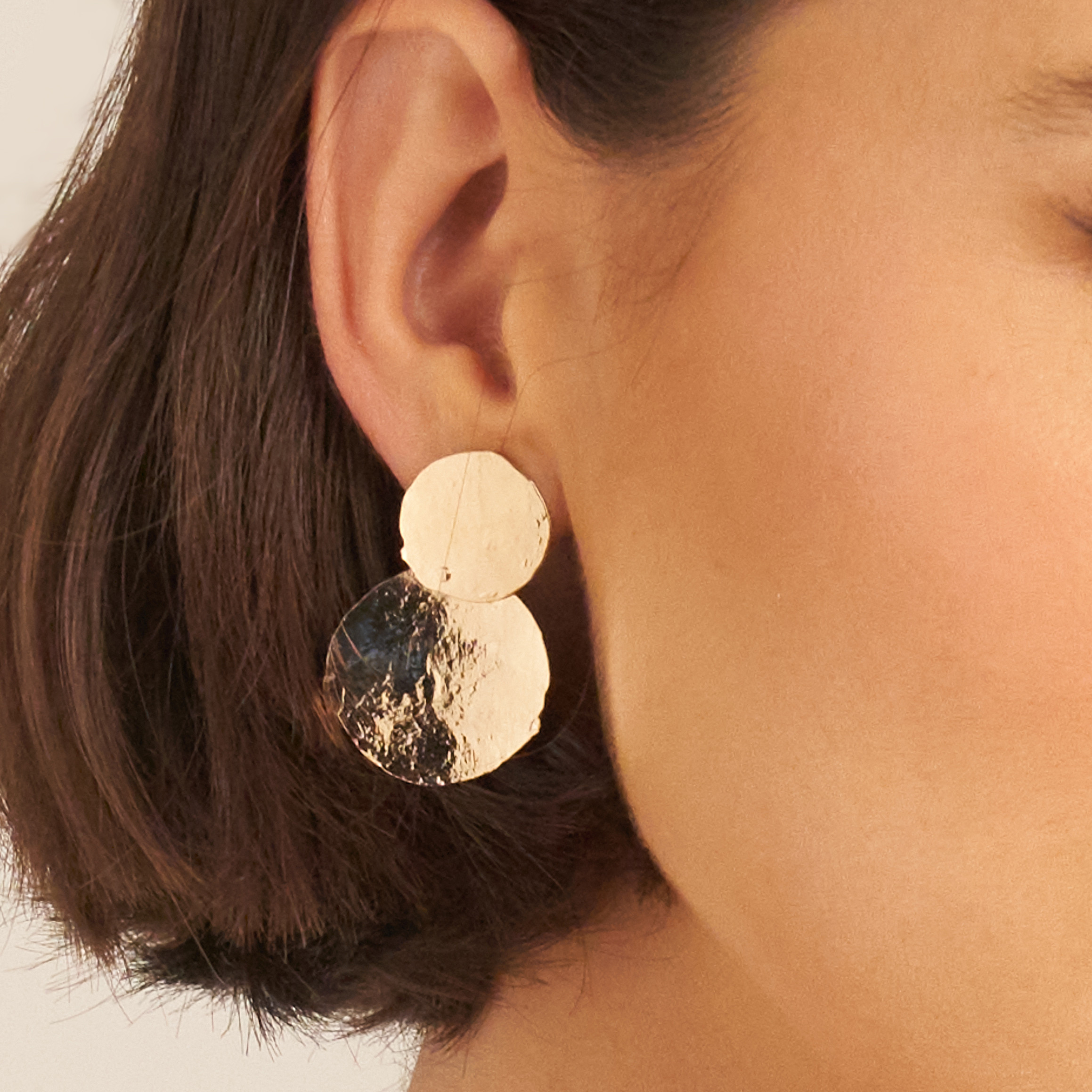 Com design único, o brinco Andreza consegue dar um up na produção, possui duas esferas assimétricas com aspecto rústico e moderno. Faça um penteado no cabelo e arrase na produção! Tarraxas personalizadas (Una - Ps 139:14). Banhado em ouro 18k, com verniz antialérgico e níquel free.