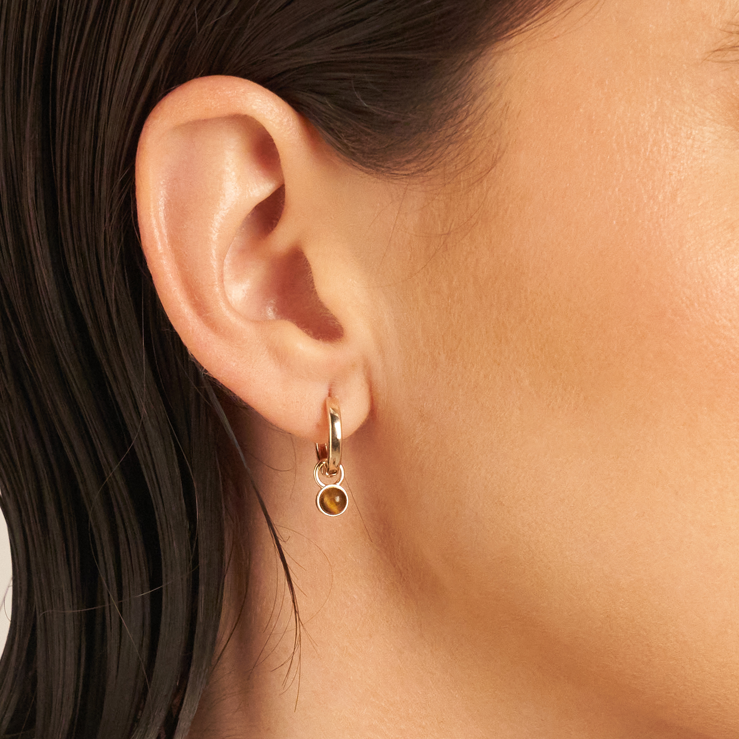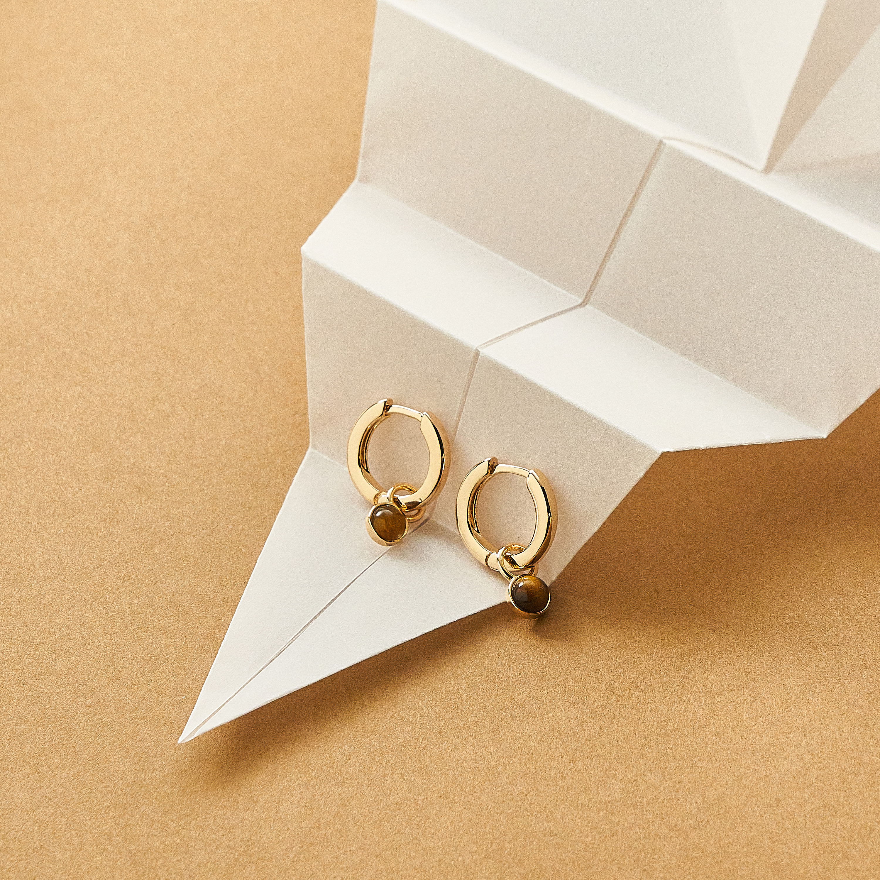 Clássico e chic o brinco Eliany possui pingente de pedra Olho de Tigre que dá um toque diferenciado no look. A argola de fecho clique traz um ar despojado na composição tornando a peça ideal para qualquer ocasião. Banhado em ouro 18k, com verniz antialérgico e níquel free.