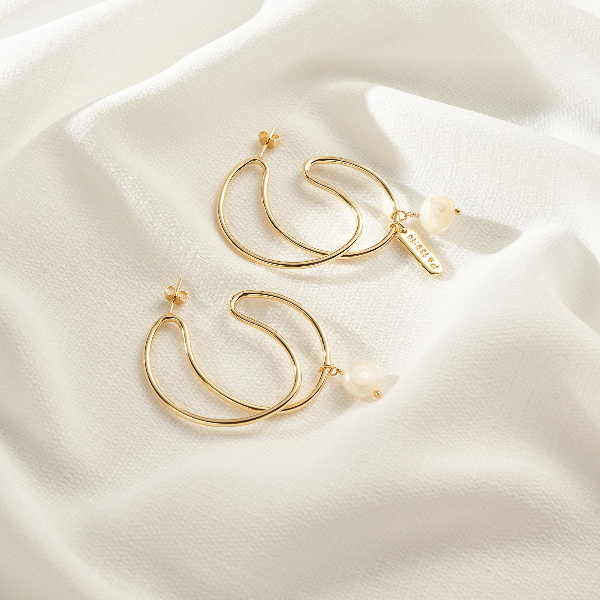 Brinco Elis elegante com base orgânica achatada e detalhe de pingente fixo com pérolas barrocas pão. Mini placa oval (Ps 139:14). Tarraxa borboleta. Banhado em ouro 18k com verniz antialérgico e níquel free. Podem ter variações no formato e cor das pérolas.