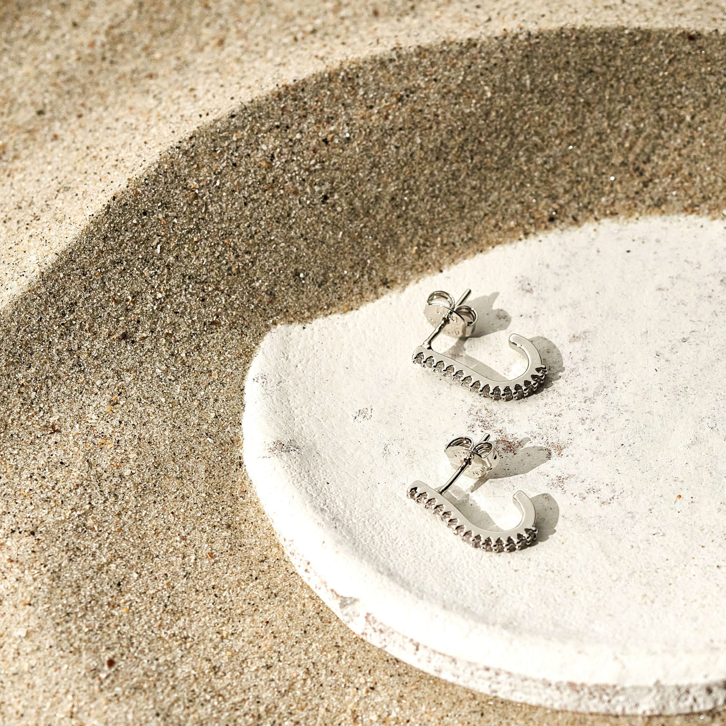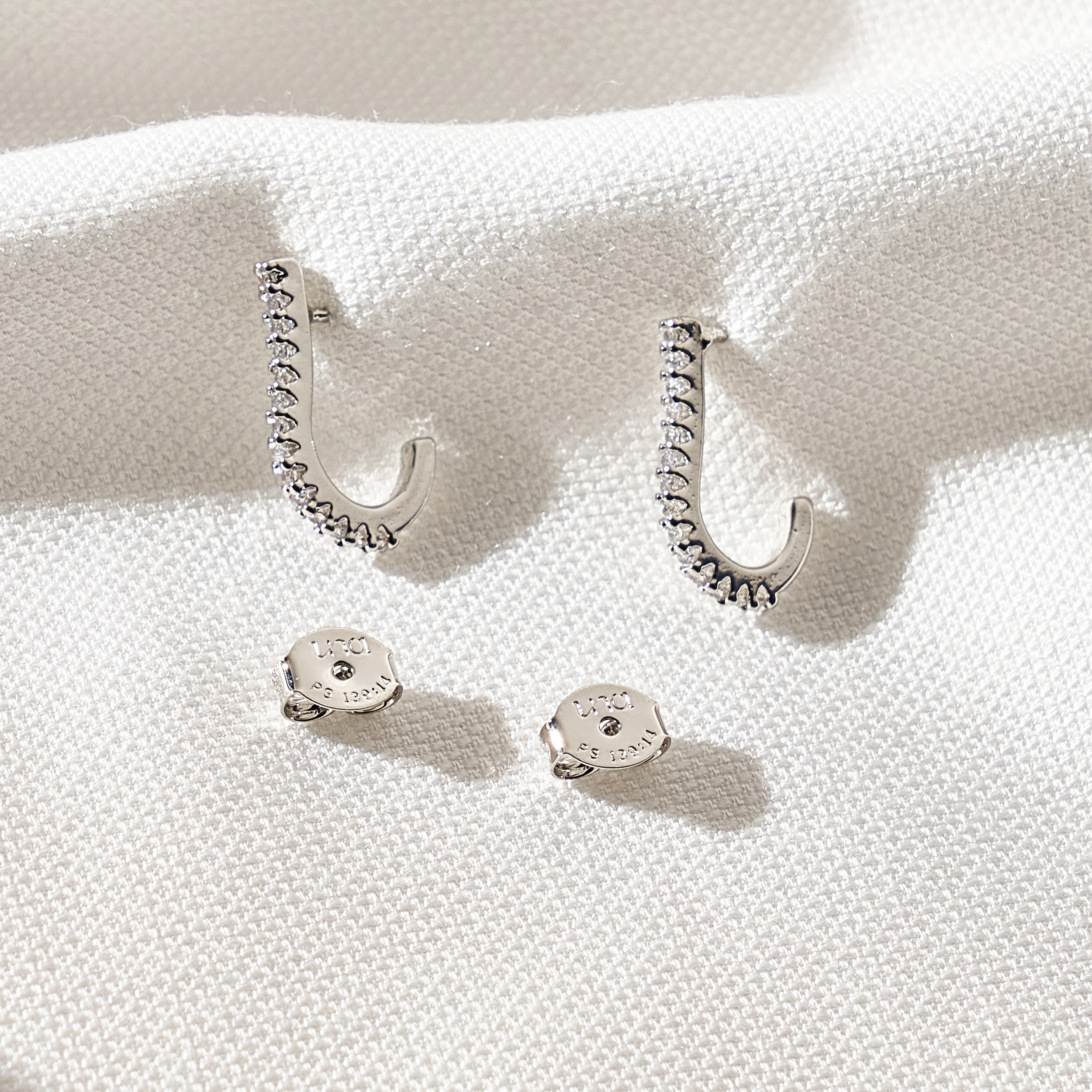 Brinco Francina moderno com base anatômica cravejado de zircônias. Tarraxa personalizada (Una - Ps 139:14). Banhado em ródio branco, com verniz antialérgico e níquel free.