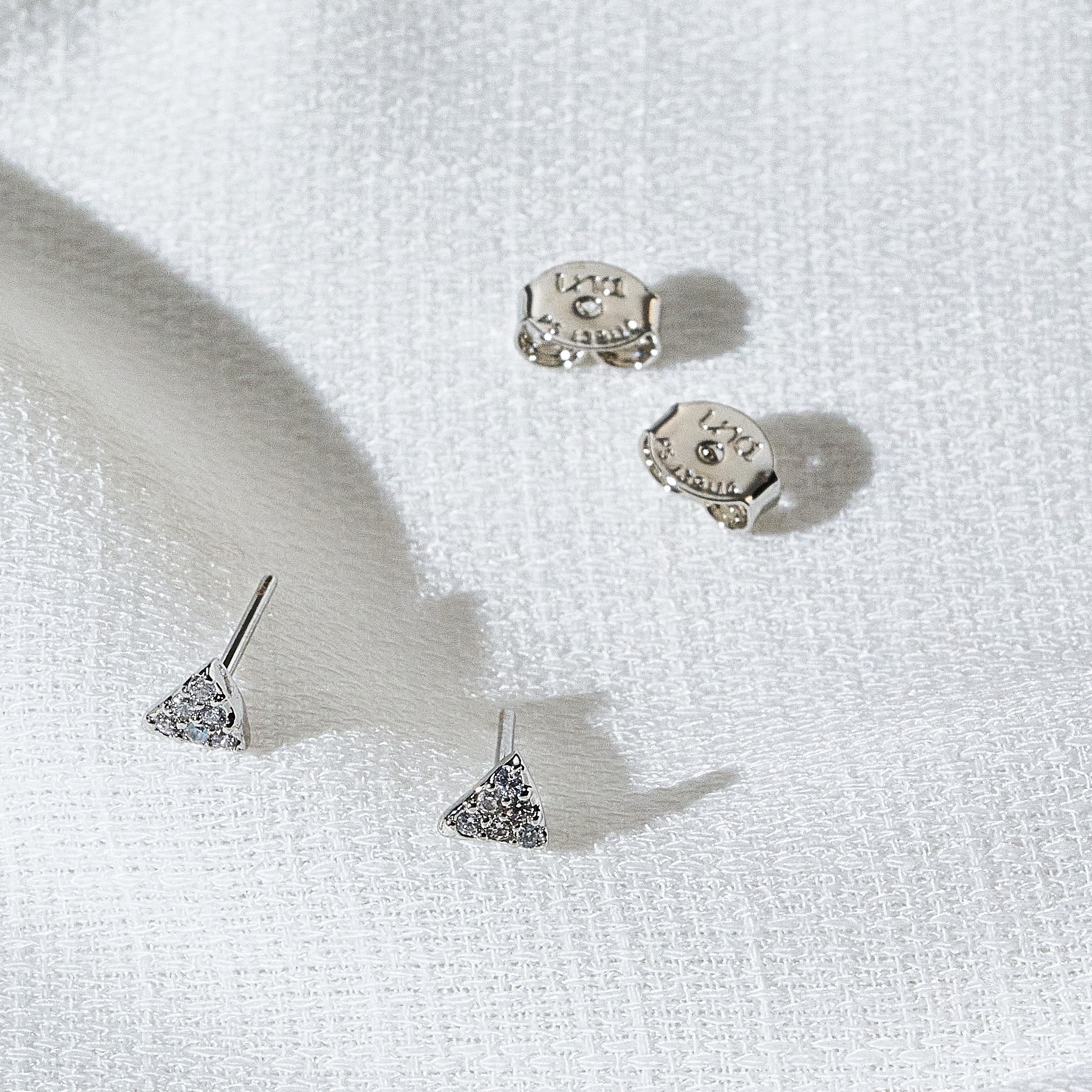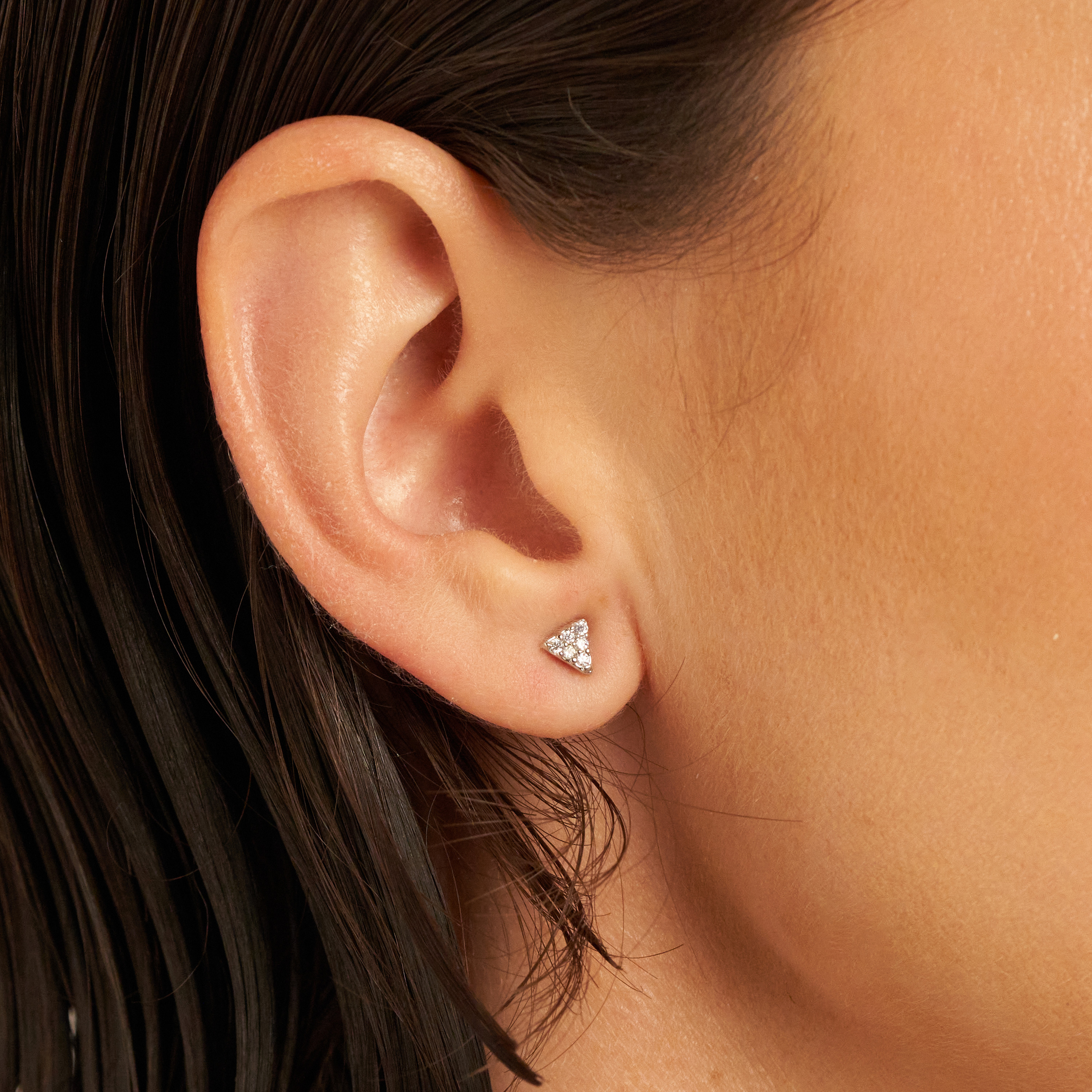 O brinco Frida é aquela peça que dá um leve brilho para a produção, seja usado sozinho ou mesmo em um mix. A base em formato triangular é cravejada de zircônias que traz um toque de delicadeza, abuse das possibilidades e use até como piercing! Tarraxas personalizadas (Una - Ps 139:14). Banhado em ródio branco, com verniz antialérgico e níquel free.