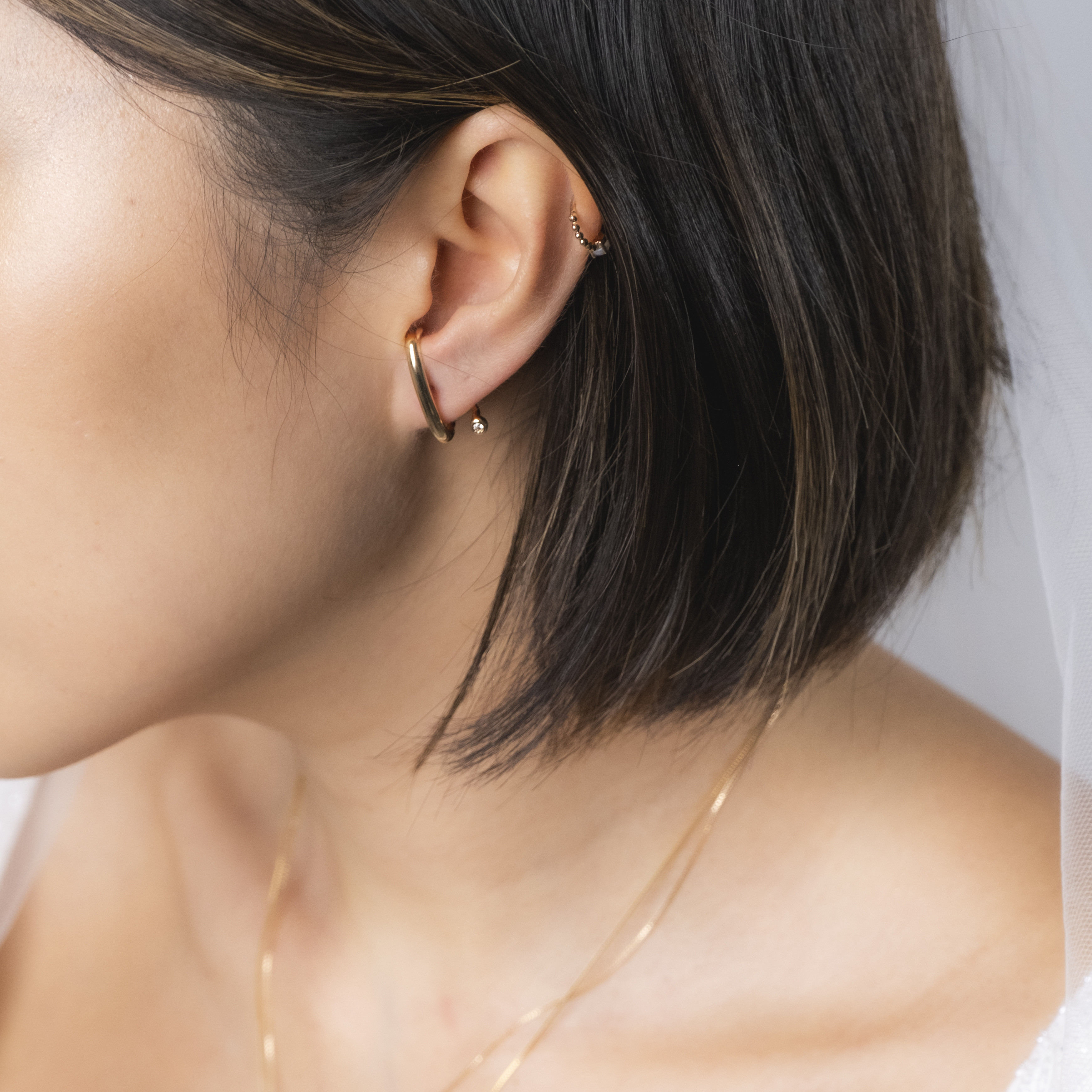 Brinco Holly delicado em formato irregular e detalhe de zircônia. Gravado na parte interna Una e Ps 139:14. Banhado em ouro 18k, com verniz antialérgico e níquel free.