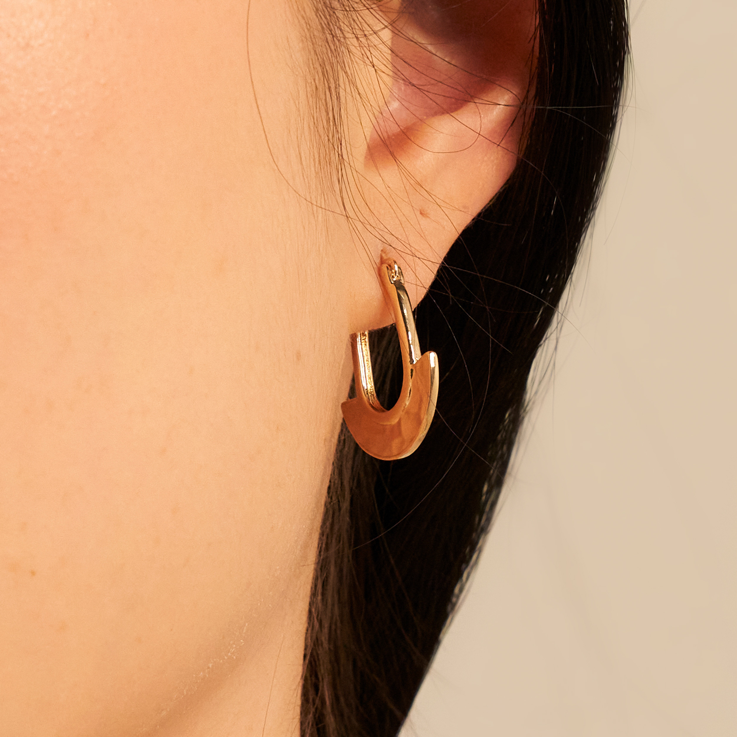 Sofisticação define o brinco Hyeri, uma peça com personalidade que possui a base de argola geométrica e o detalhe inferior texturizado. Peça banhada em ouro 18k, com verniz antialérgico e níquel free. Possui fecho clique e detalhe da nossa concha Una.