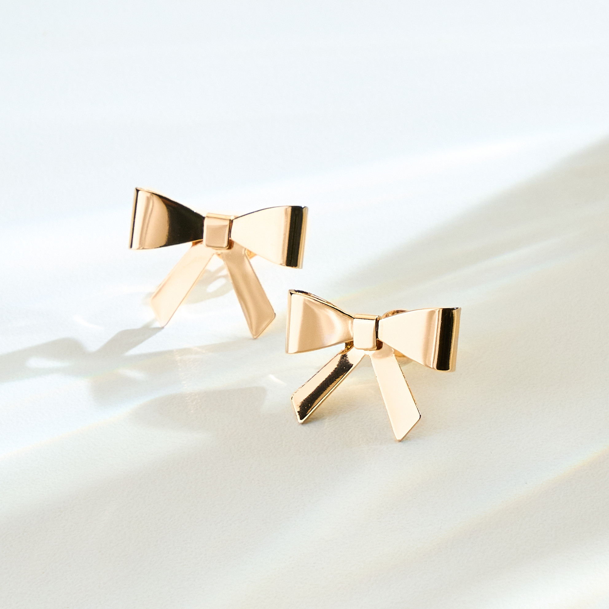O brinco Ianni é puro charme, possui a base em formato de laço, perfeito para dar um toque romântico e delicado na produção. Tarraxas personalizadas (Una - Ps 139:14). Banhado em ouro 18k, com verniz antialérgico e níquel free.