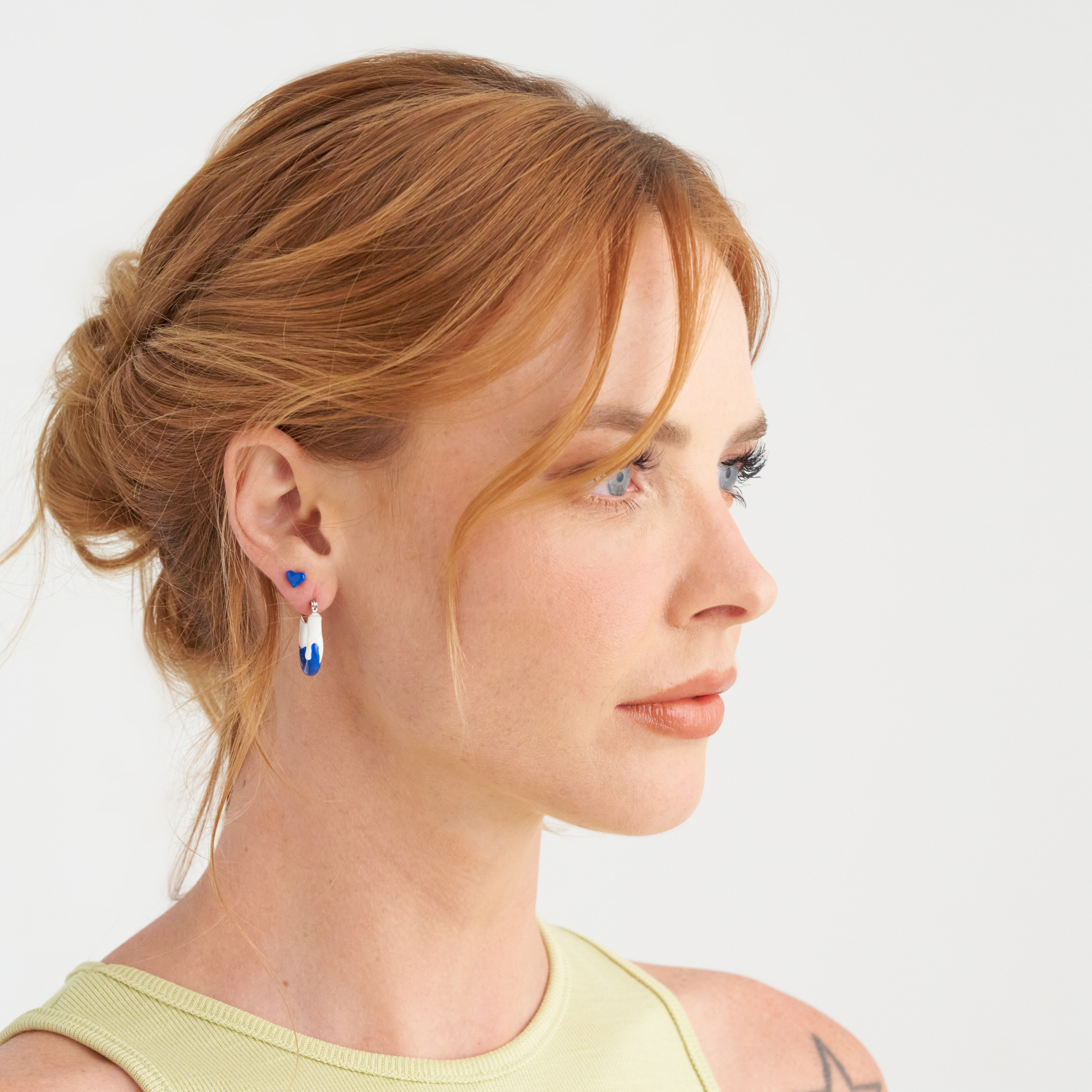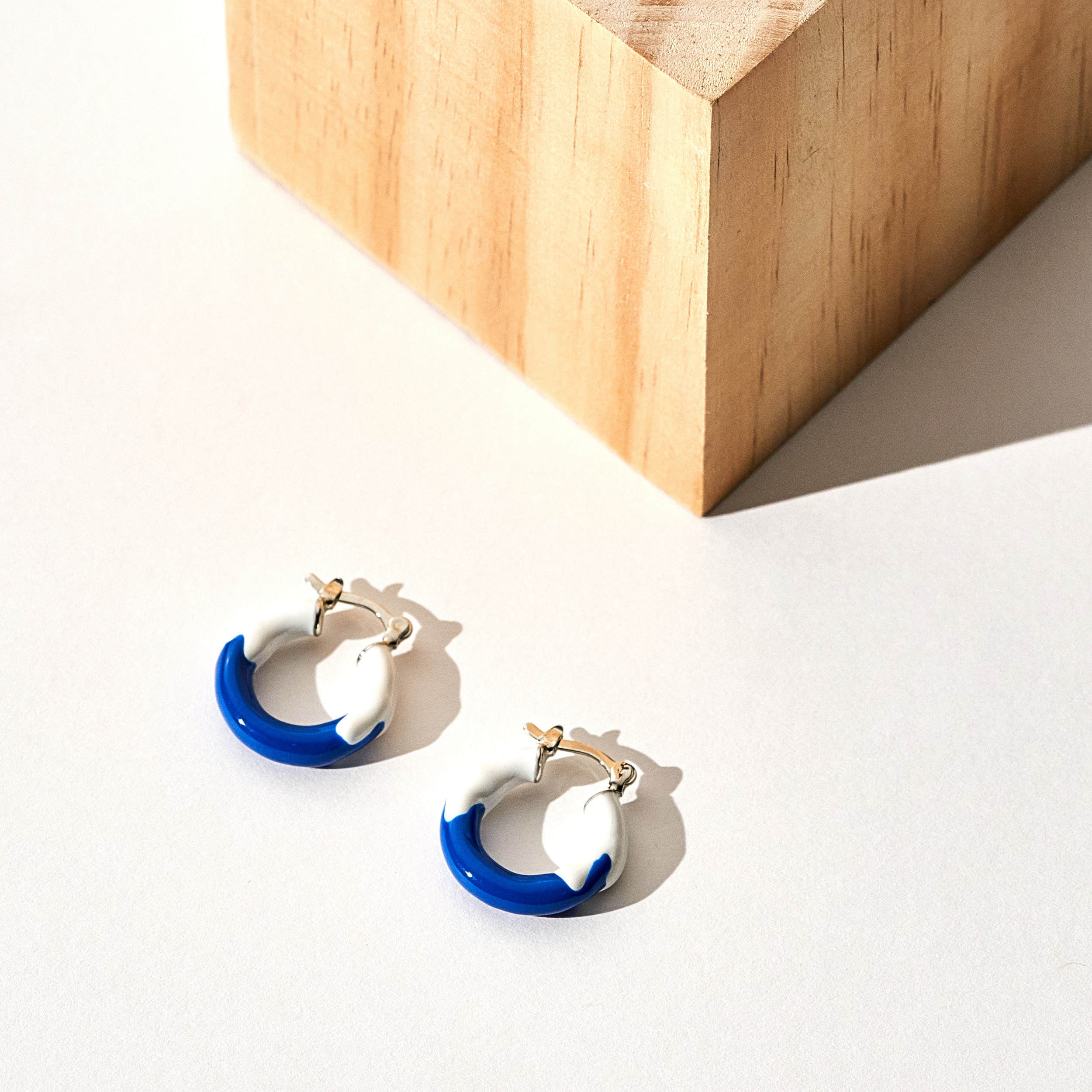 Brinco Lilite Resina Branca e Azul Banho Ródio Branco
