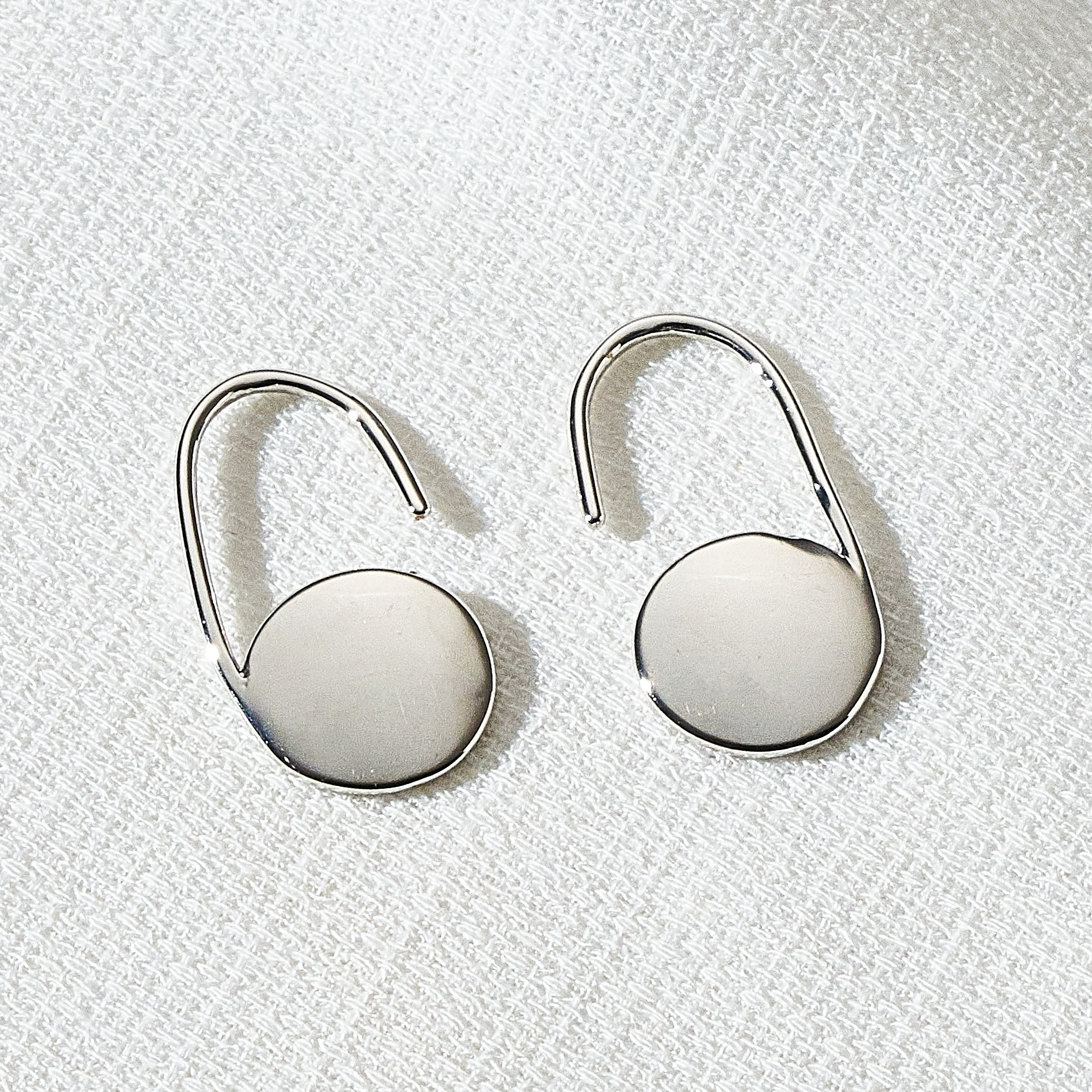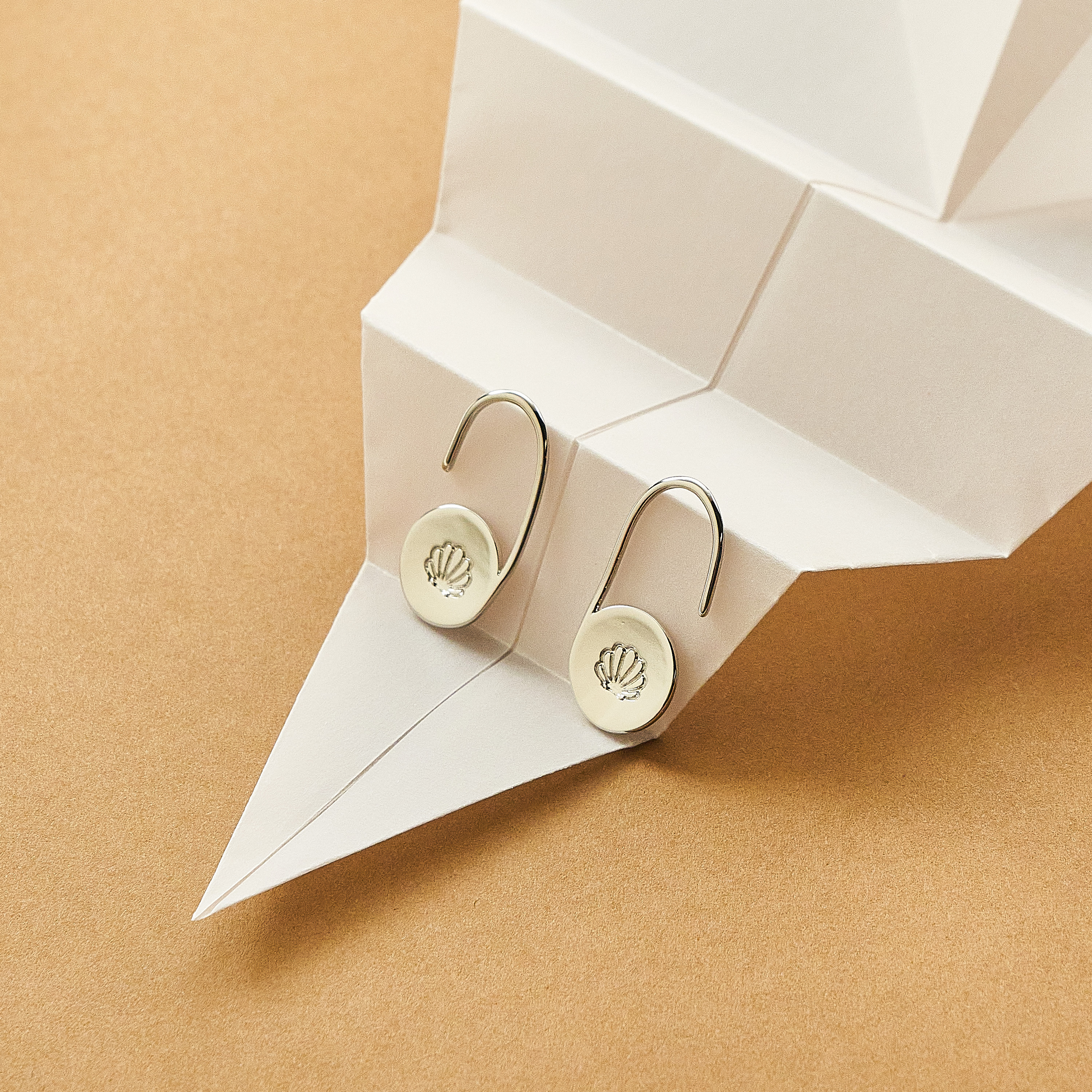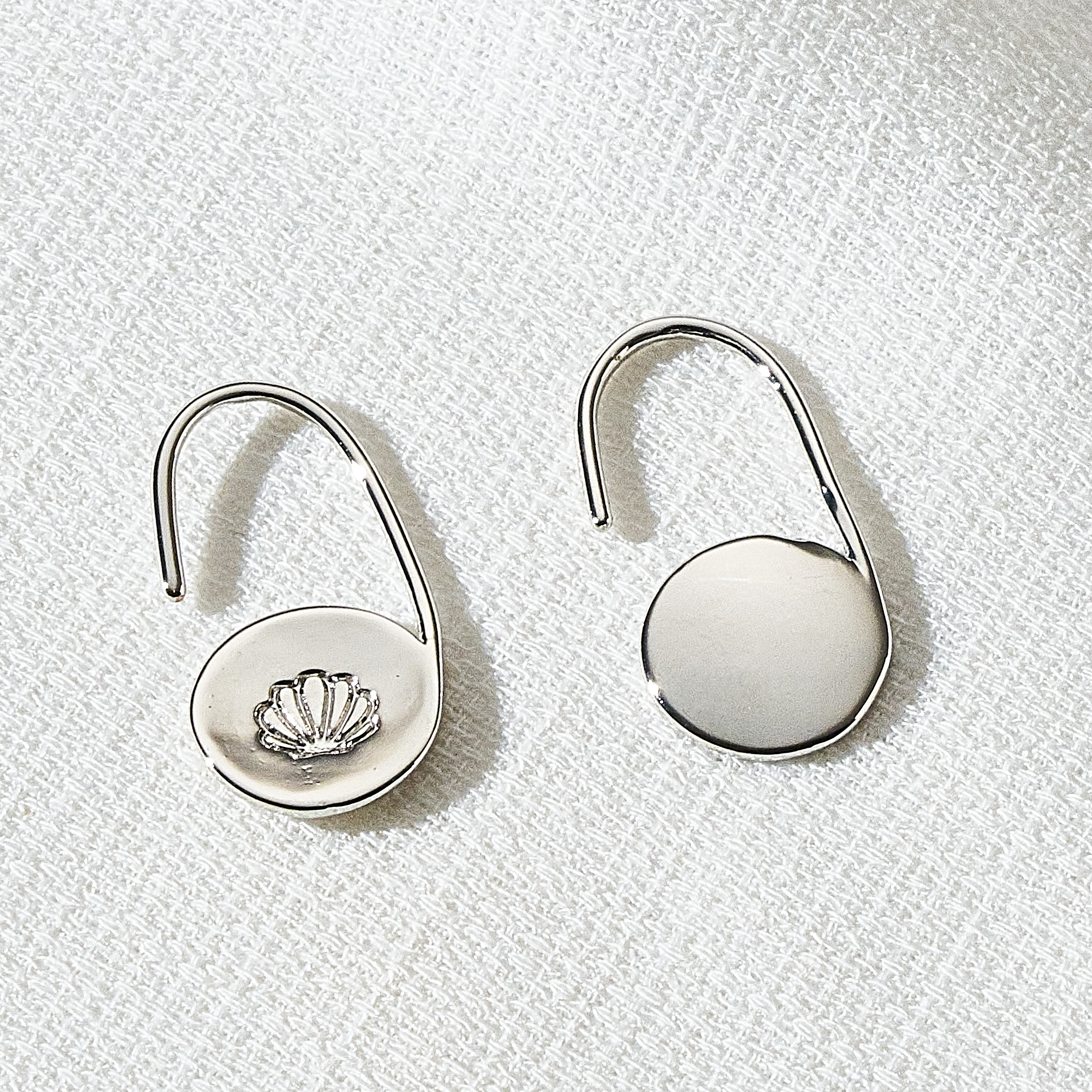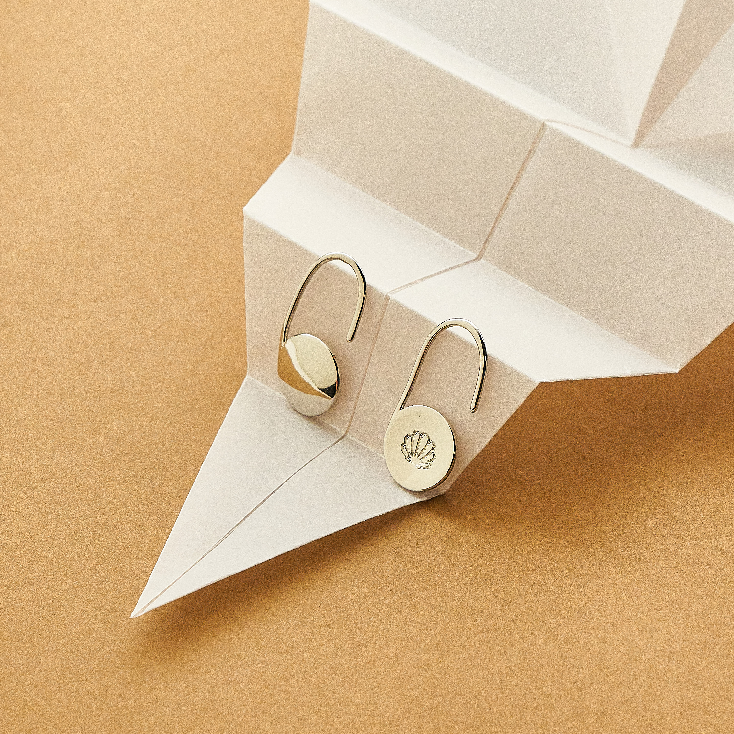 O brinco Nice tem o design moderno e minimalista, possui o modelo gancho e detalhe circular achatado na ponta com a gravação da nossa concha Una, dando um toque de personalidade para a produção. Banhado em ródio branco, com verniz antialérgico e níquel free.