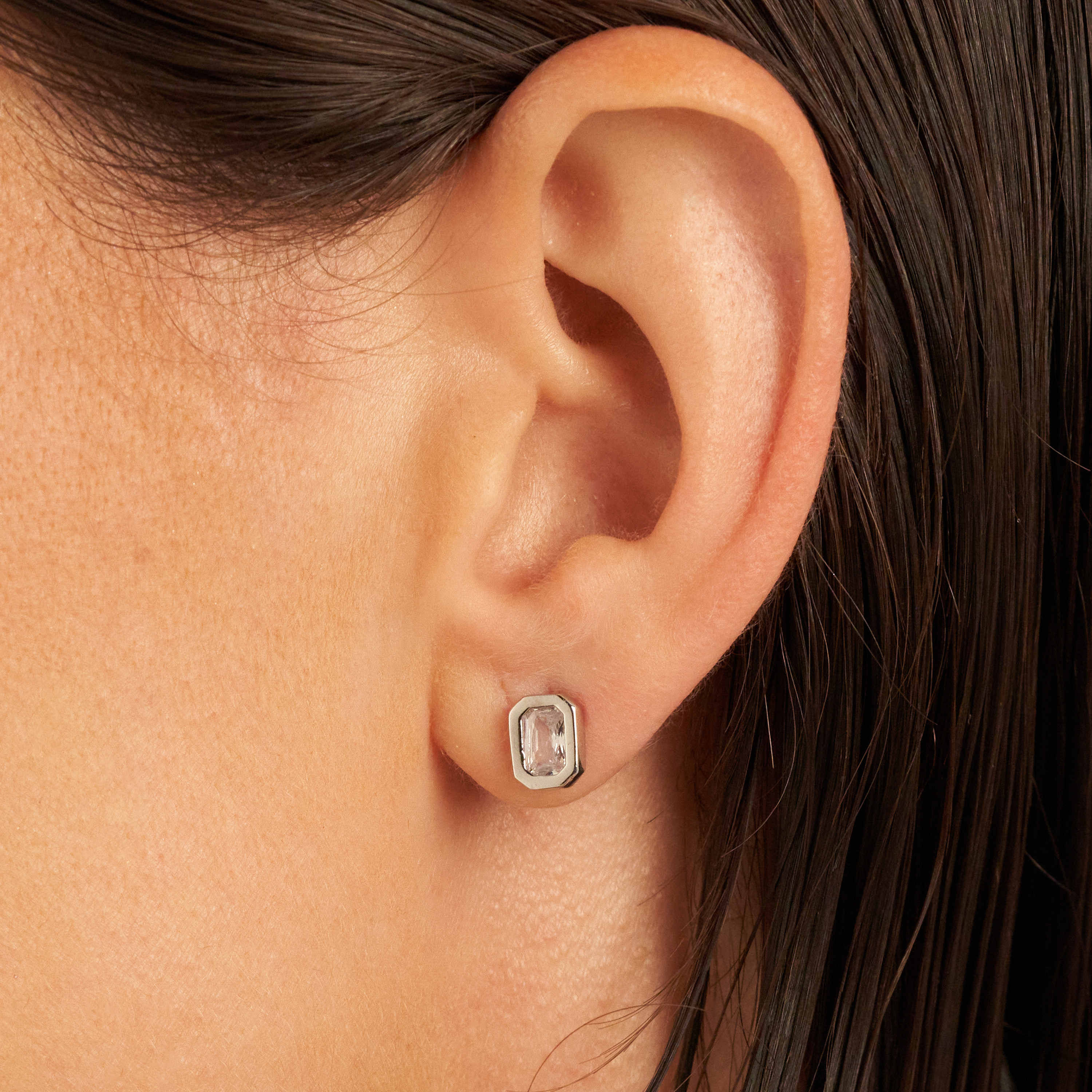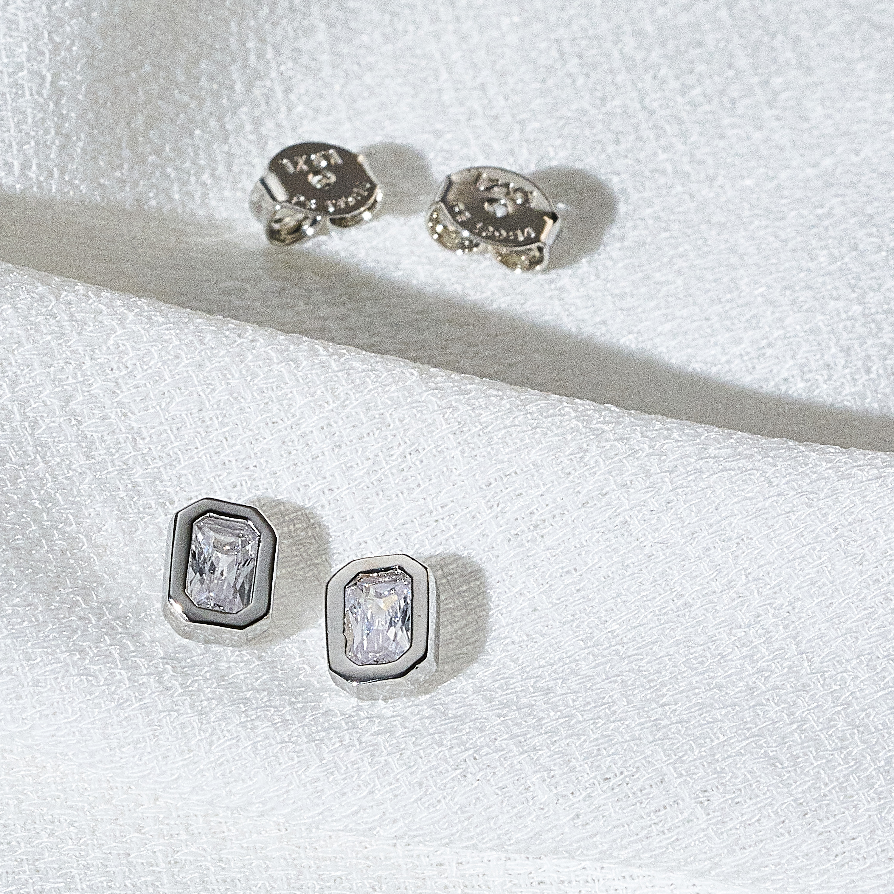 O brinco Raquel esbanja delicadeza, com pingente de zircônia em formato retangular traz a possibilidade de criar combinações dentro de um mix ou dar um toque de brilho na composição. Tarraxas personalizadas (Una - Ps 139:14). Banhado em ródio branco, com verniz antialérgico e níquel free.