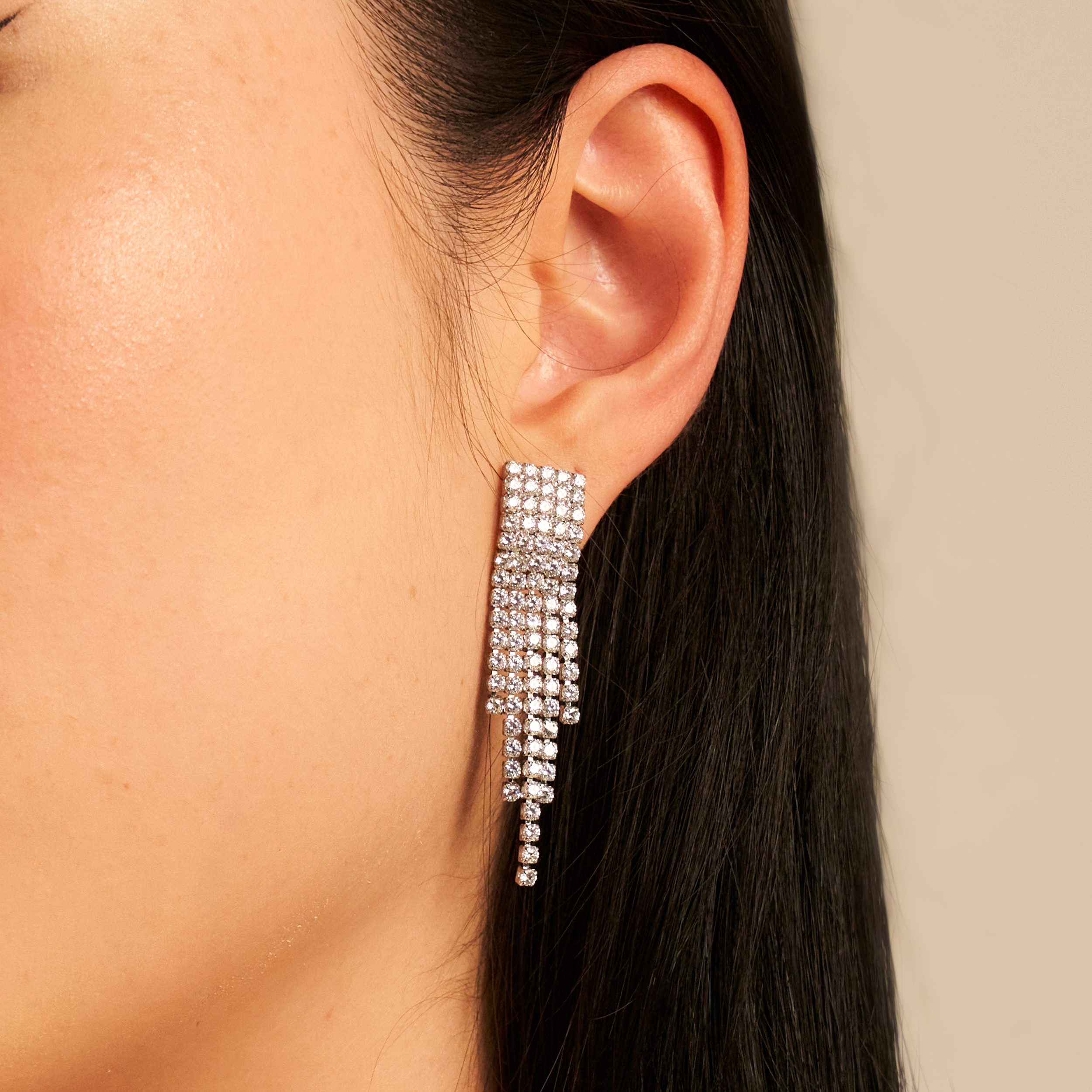 Elegância define o brinco Shin, ele é composto da corrente riviera que traz muito brilho e sofisticação para o look e pode ser considerado tranquilamente a peça protagonista da produção. Abuse das possibilidades. Tarraxas personalizadas (Una - Ps 139:14). Banhado em ródio branco, com verniz antialérgico e níquel free.