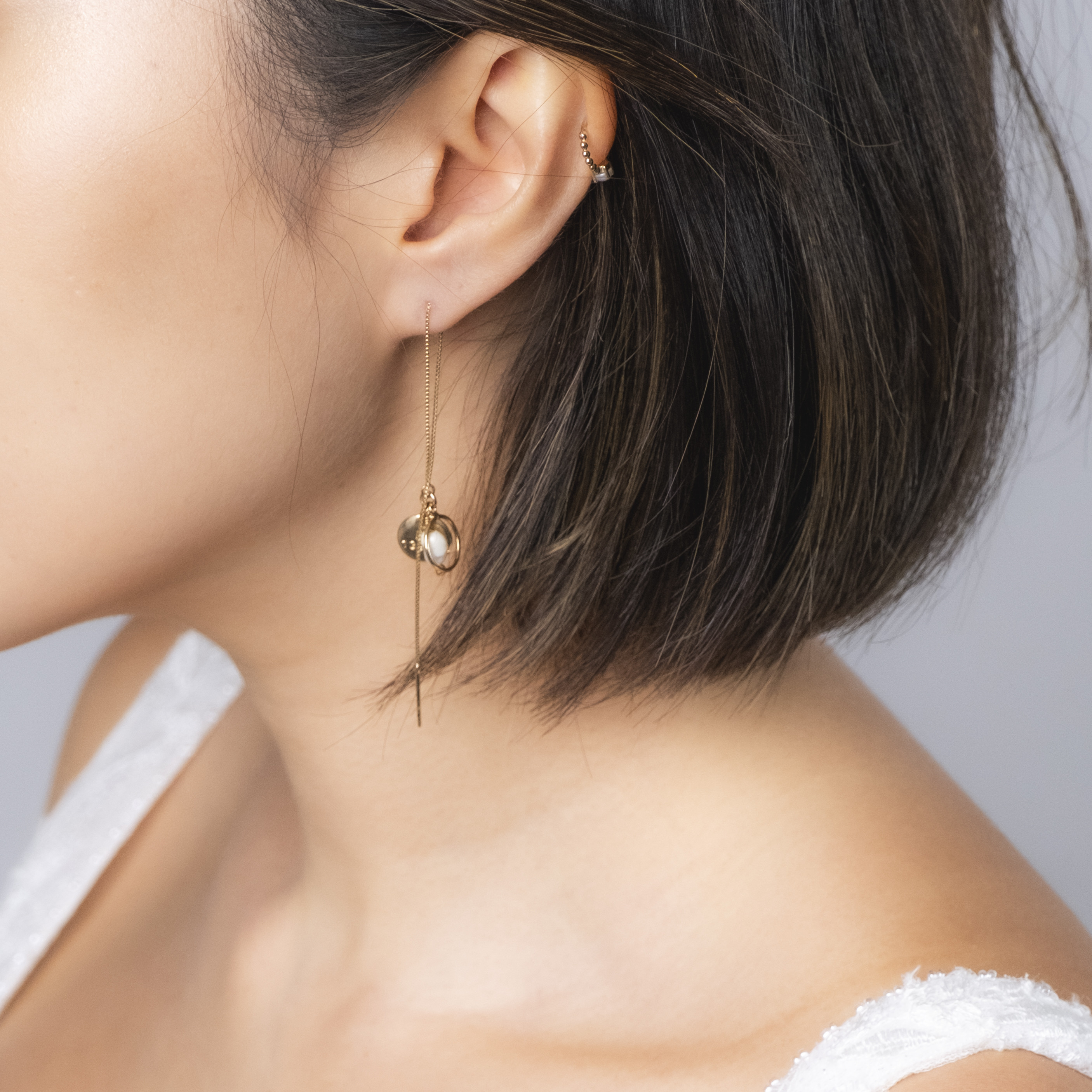 Brinco Stella irregular delicado de corrente veneziana com pino. Detalhe de argola com pérola arroz e mini placa redonda (Ps 139:14). Banhado em ouro 18k, com verniz antialérgico e níquel free. Pode ter variações no formato e cor das pérolas.