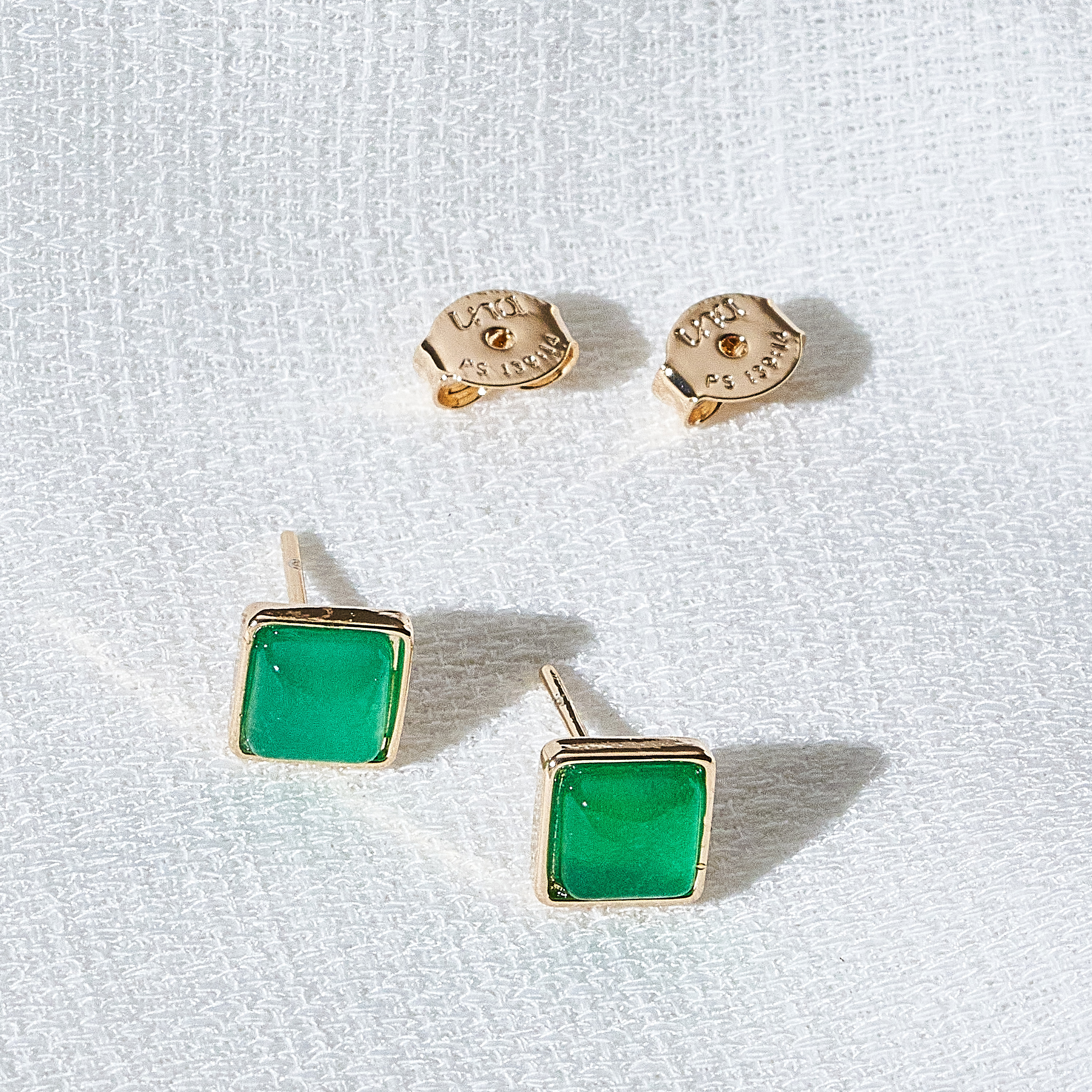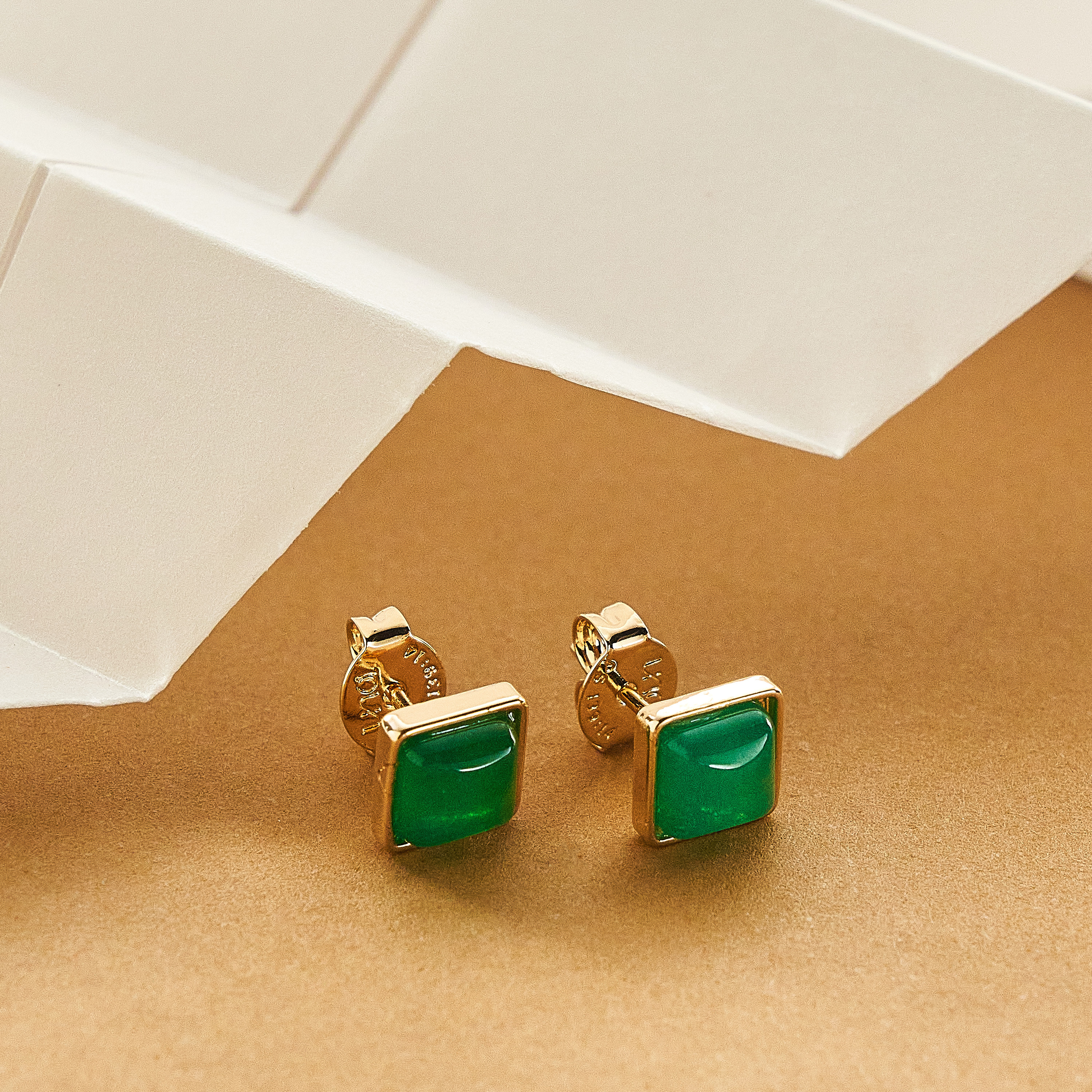 O brinco Tiffany é ideal para trazer um toque de cor mas sem roubar toda a atenção, o pingente em pedra de Jade faz o diferencial da peça dando um toque sofisticado para a produção. Tarraxas personalizadas (Una - Ps 139:14). Banhado em ouro 18k, com verniz antialérgico e níquel free.