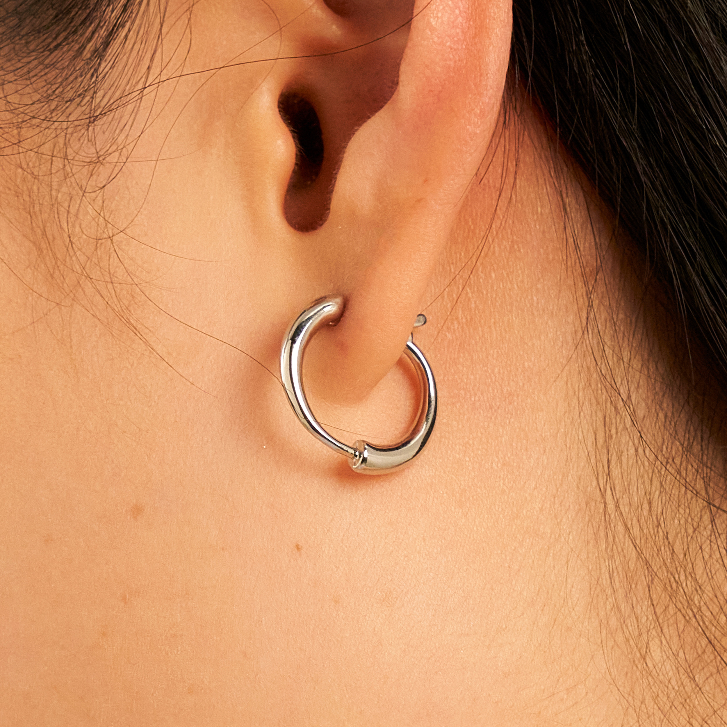 Leve e delicado, o brinco Woong é uma argola com design minimalista, perfeito para fazer composição com outros brincos ou usar no dia a dia, é aquela peça indispensável no porta-joias. Peça banhada em ródio branco, com verniz antialérgico e níquel free. Possui fecho clique e detalhe da nossa concha Una.