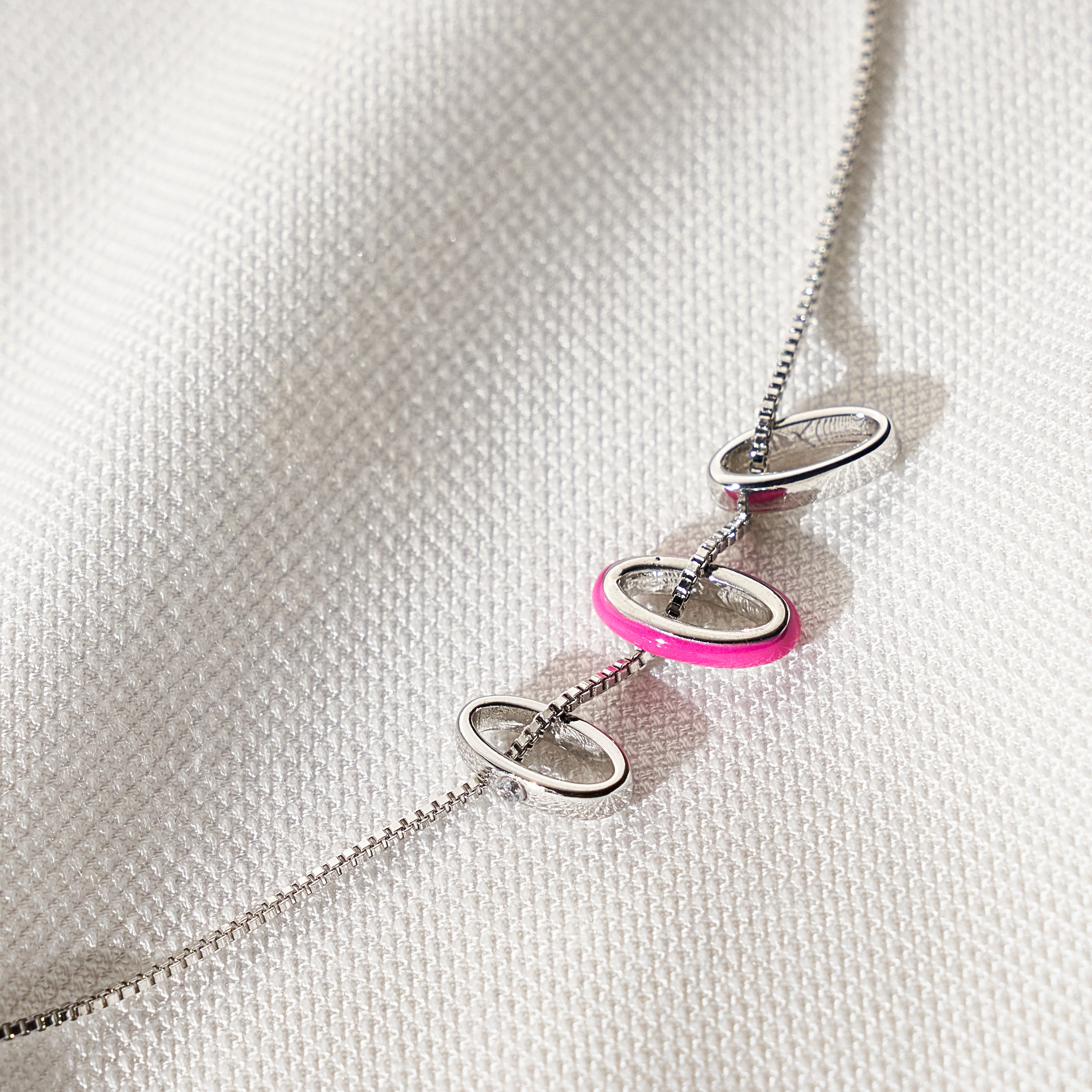 Colar Abby Resina Pink Banho Ródio Branco