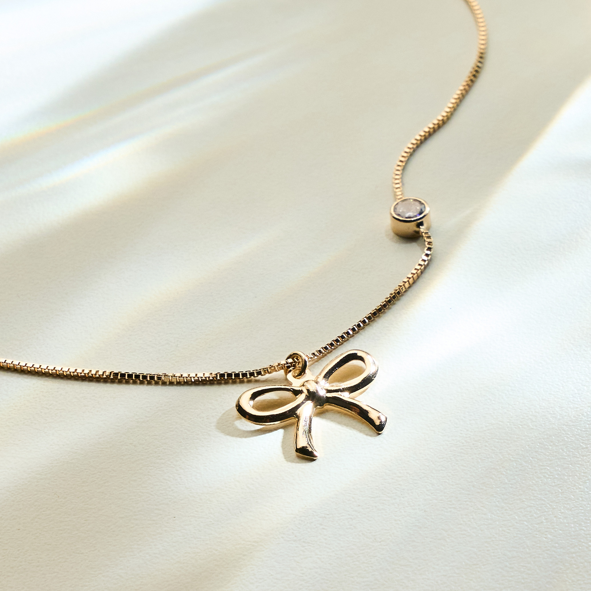 O colar Amarílis traz autenticidade nos seus detalhes delicados, a corrente veneziana faz a combinação ideal com o pingente em ponto de luz de zircônia e o pingente de laço, deixando o modelo perfeito para dar um toque romântico no look. Possui extensor em três medidas com fecho lagosta e detalhe da nossa concha Una. Peça banhada em ouro 18k, com verniz antialérgico e níquel free.