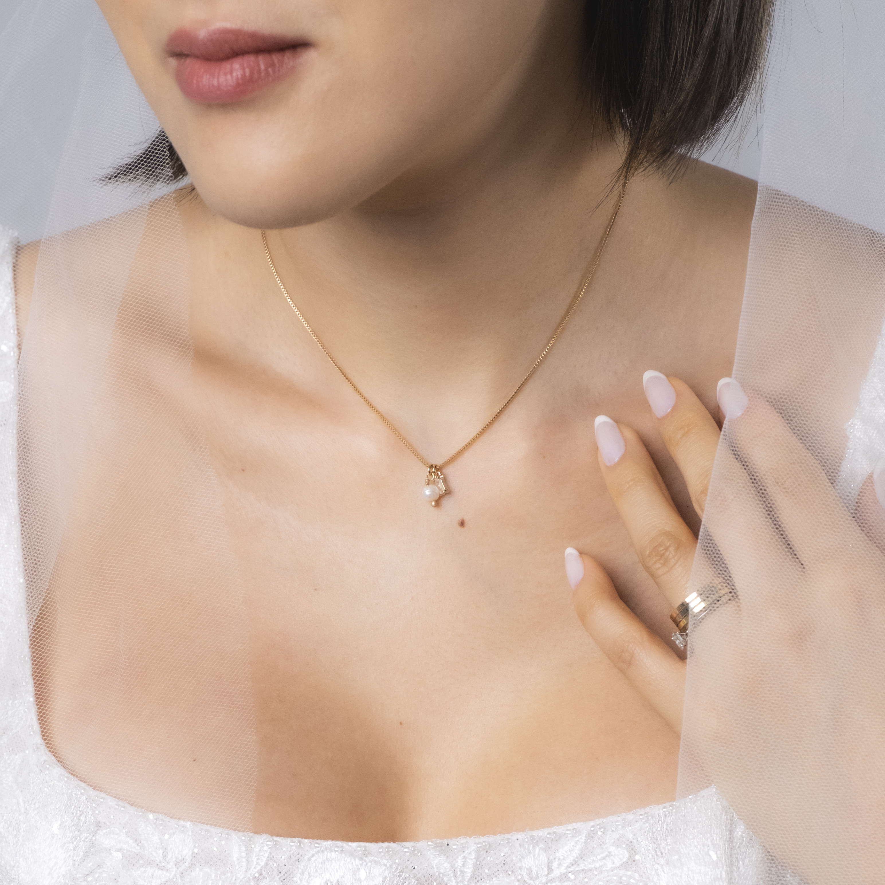 Colar Bia super delicado de corrente veneziana com mini pingentes de zircônia retangular e pérola barroca irregular. Extensor em 3 medidas com mini placa oval (Ps 139:14). Banhado em ouro 18k, com verniz antialérgico e níquel free. Pode ter variações no formato e cor das pérolas.
