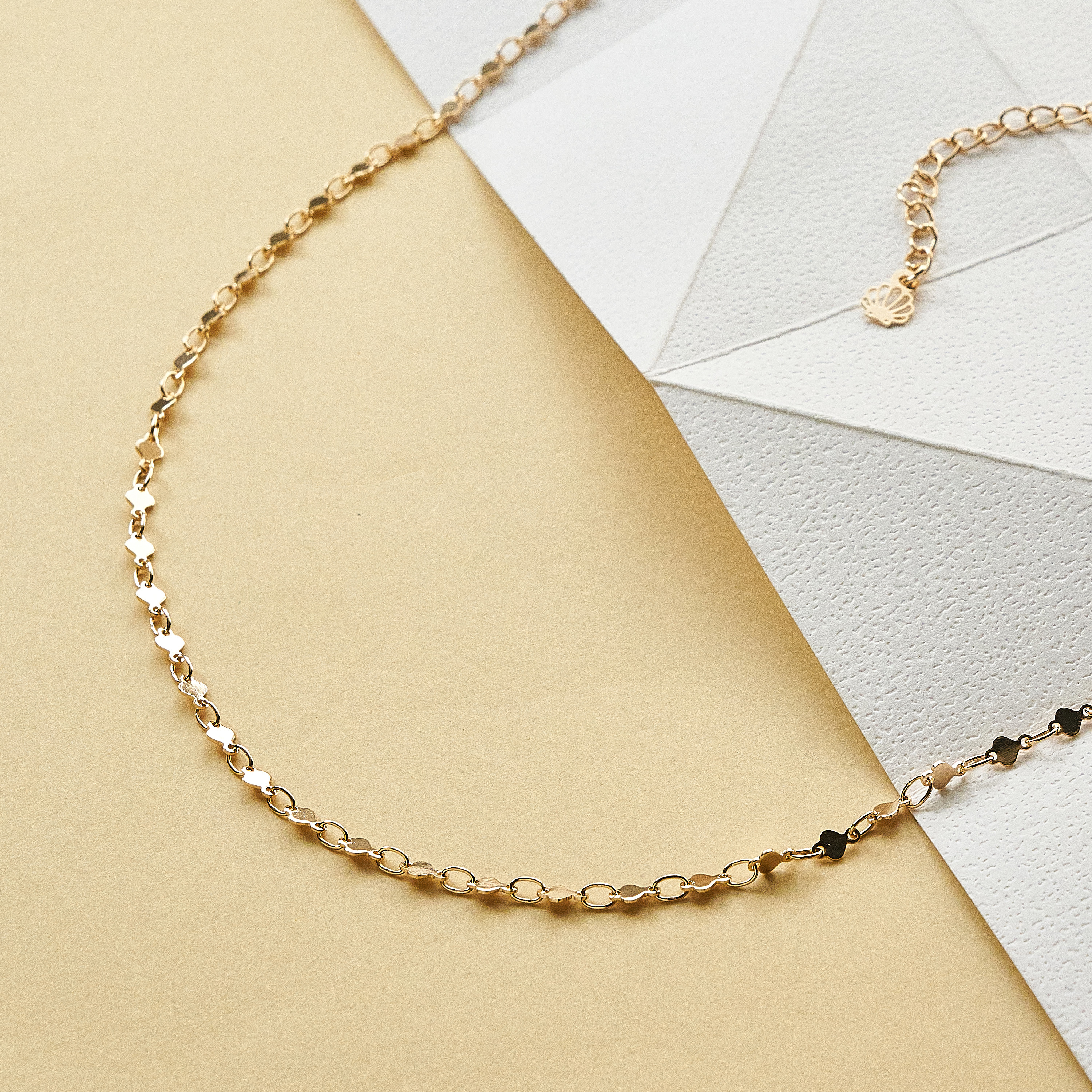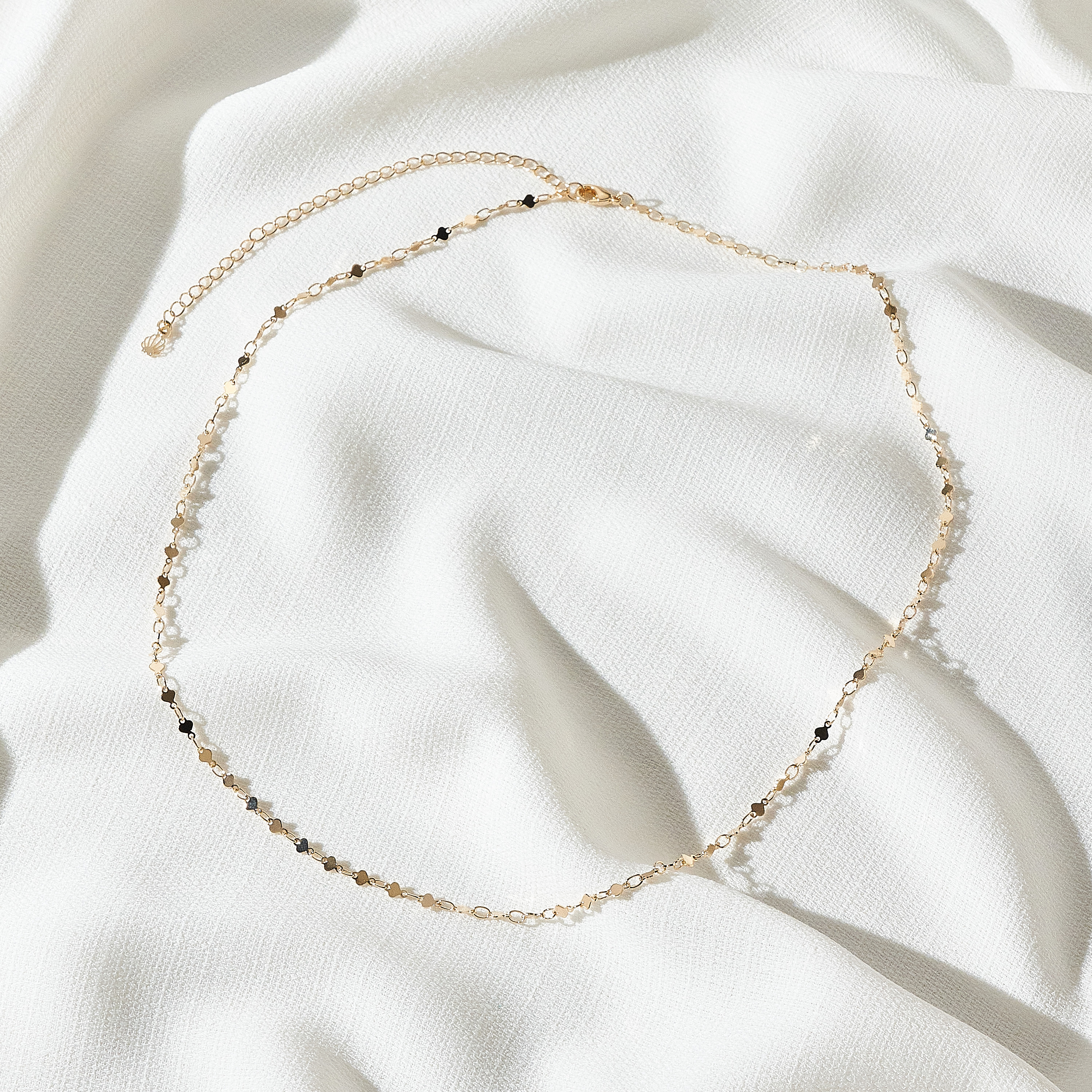 Com design despojado e minimalista, o colar Elma pode ser usado em qualquer ocasião, a brincadeira entre a corrente de elos e mini corações faz dele uma peça coringa e versátil. Peça banhada em ouro 18k, com verniz antialérgico e níquel free. Possui extensor, detalhe nossa concha Una e fecho lagosta.
