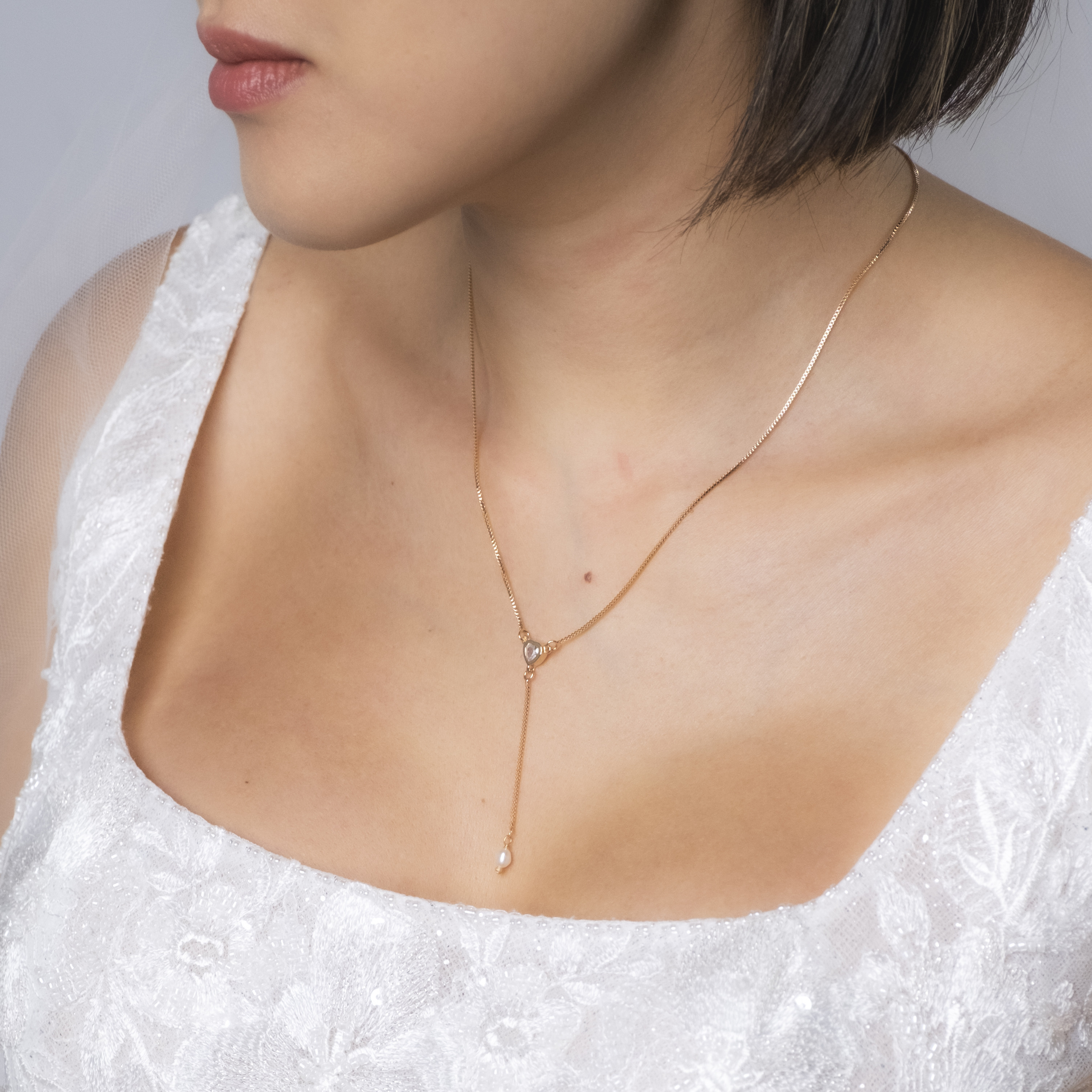 O colar Jia tem o modelo gravatinha que nunca sai de moda, pode ser usado sozinho para um look mais clean ou em um mix para trazer mais ousadia. Possui a corrente veneziana e faz a junção entre pingente em formato de coração com zircônia, e a ponta o pingente de mini pérola arroz. Peça banhada em ouro 18k, com verniz antialérgico e níquel free. Pode ter variações no formato e cor da pérola.