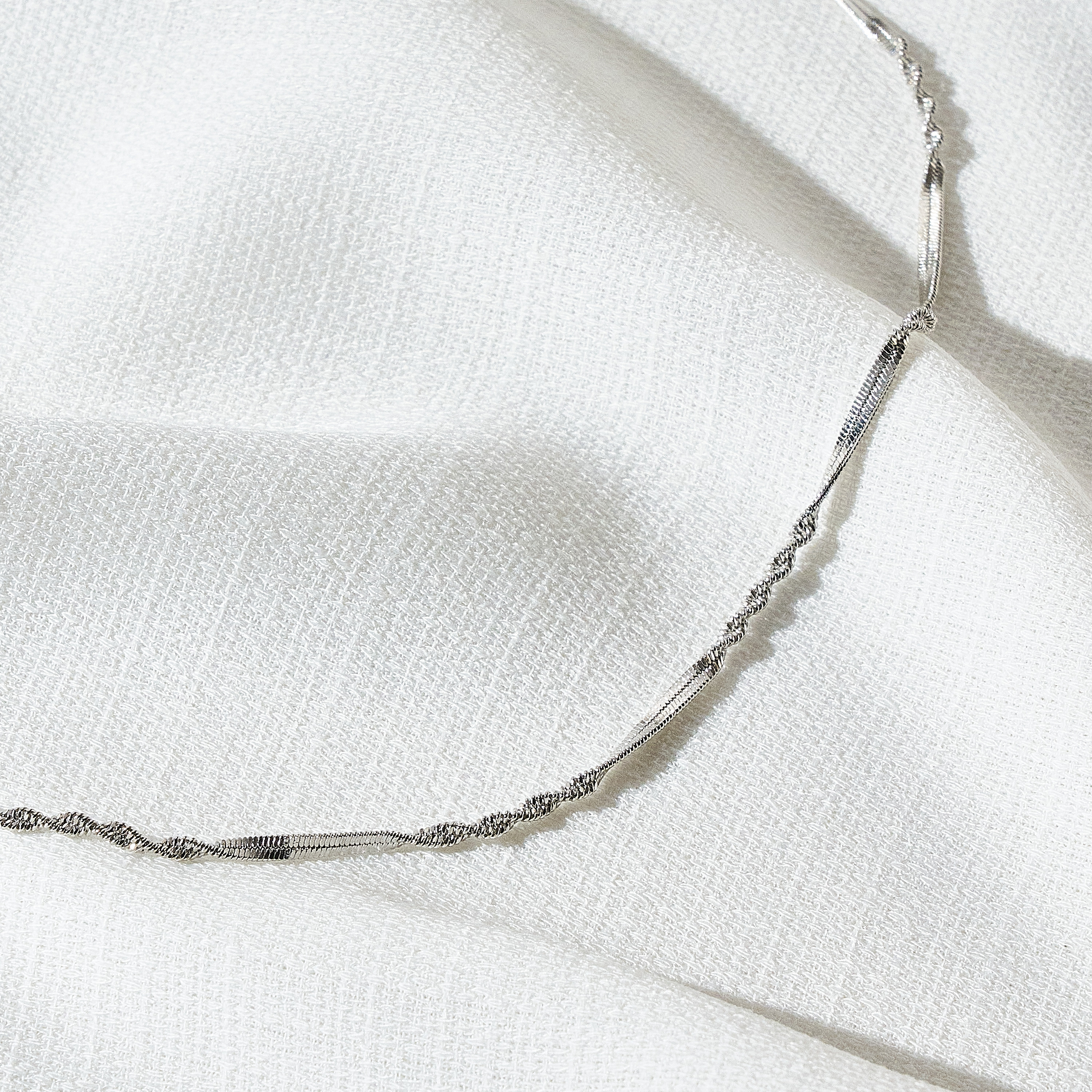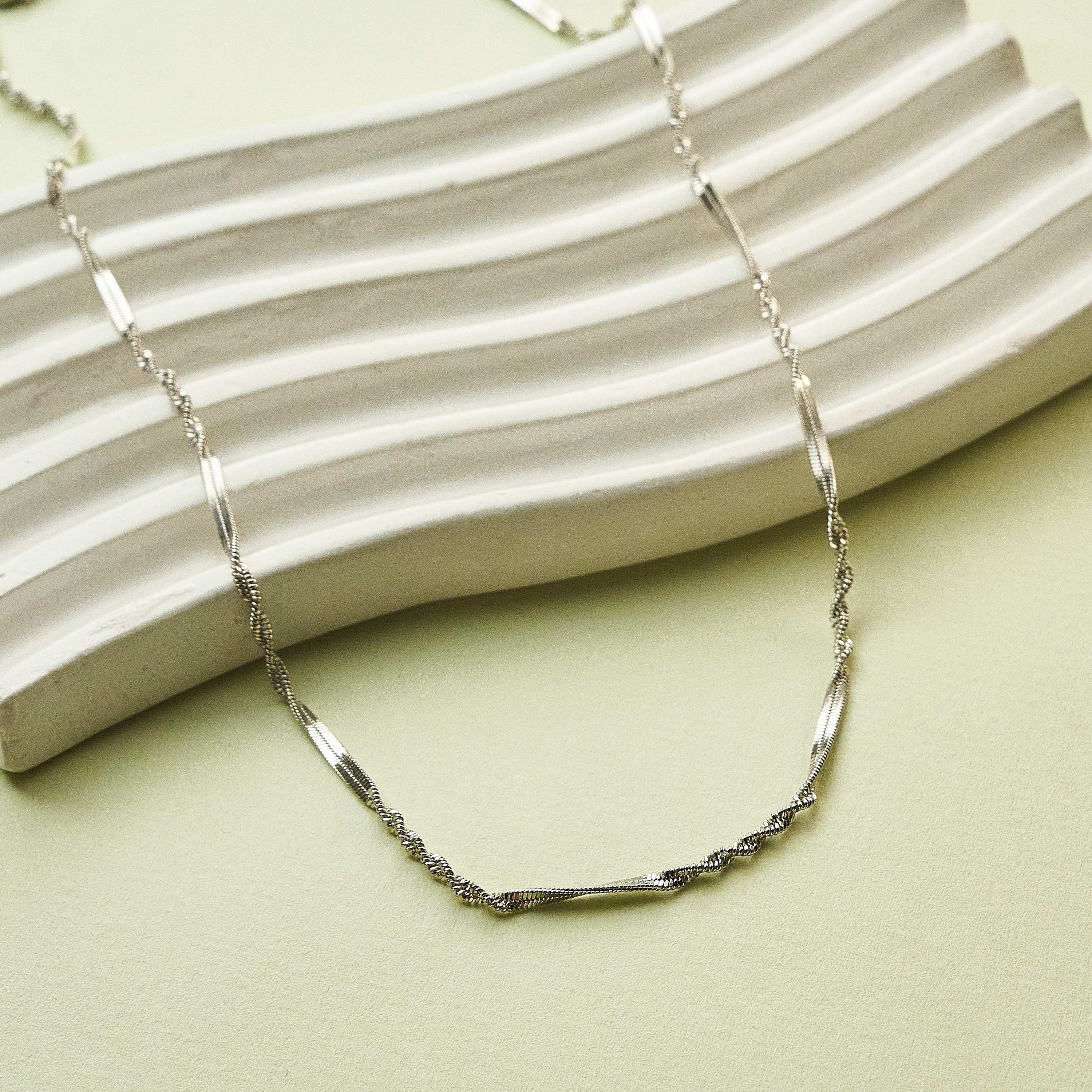 O colar Lori é composto de corrente meia malha e meia singapura, atual e autêntica dá aquela ar de elegância na composição, você precisa ter! Peça banhada em ródio branco, com verniz antialérgico e níquel free, possui o detalhe nossa concha Una e fecho lagosta.