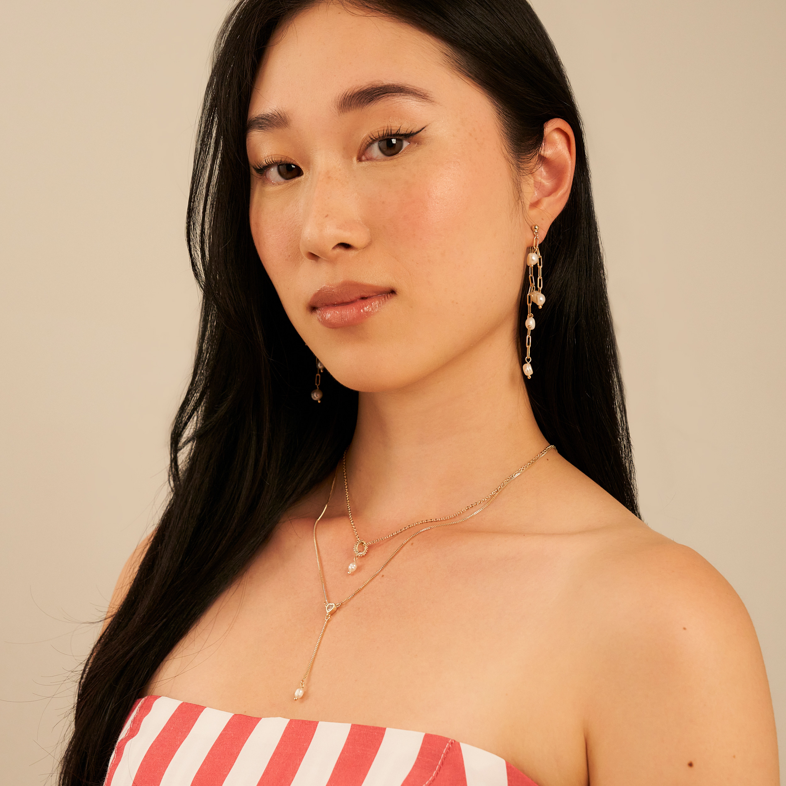 O colar Minseo é uma peça coringa que pode ser usada todos os dias para dar um toque de brilho na produção. Possui a corrente cadeado e o pingente móvel circular cravejado de zircônias, junto com o pingente de mini pérola arroz. Possui extensor em três medidas com fecho lagosta e detalhe da nossa concha Una. Peça banhada em ouro 18k, com verniz antialérgico e níquel free. Pode ter variações no formato e cor da pérola.