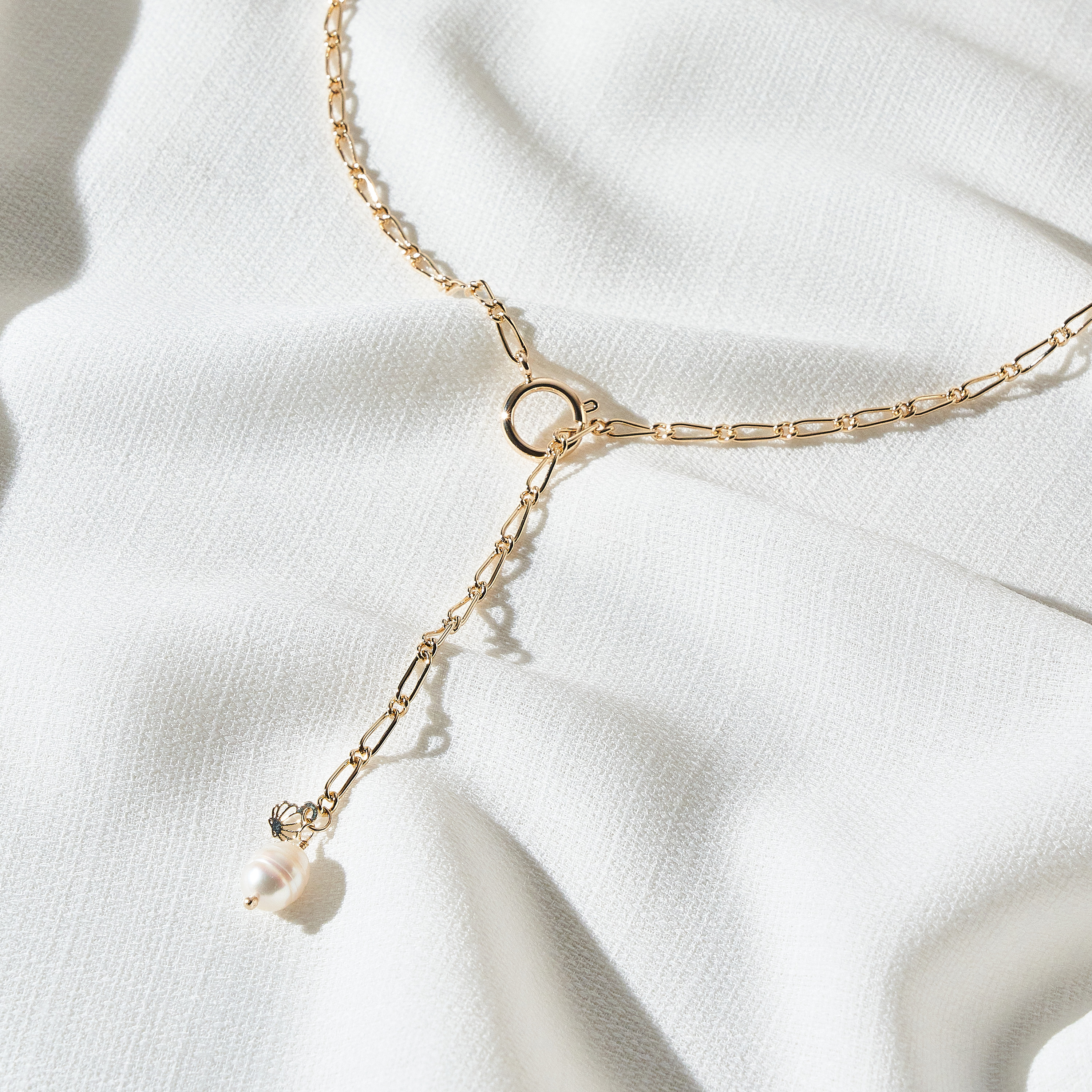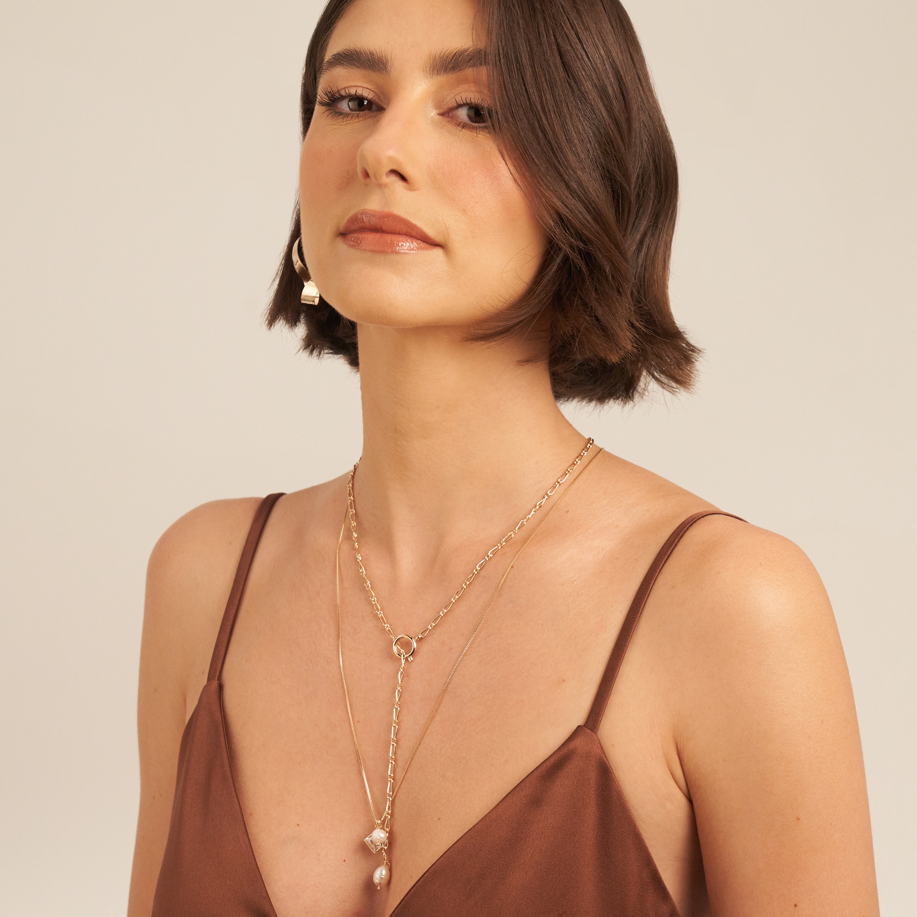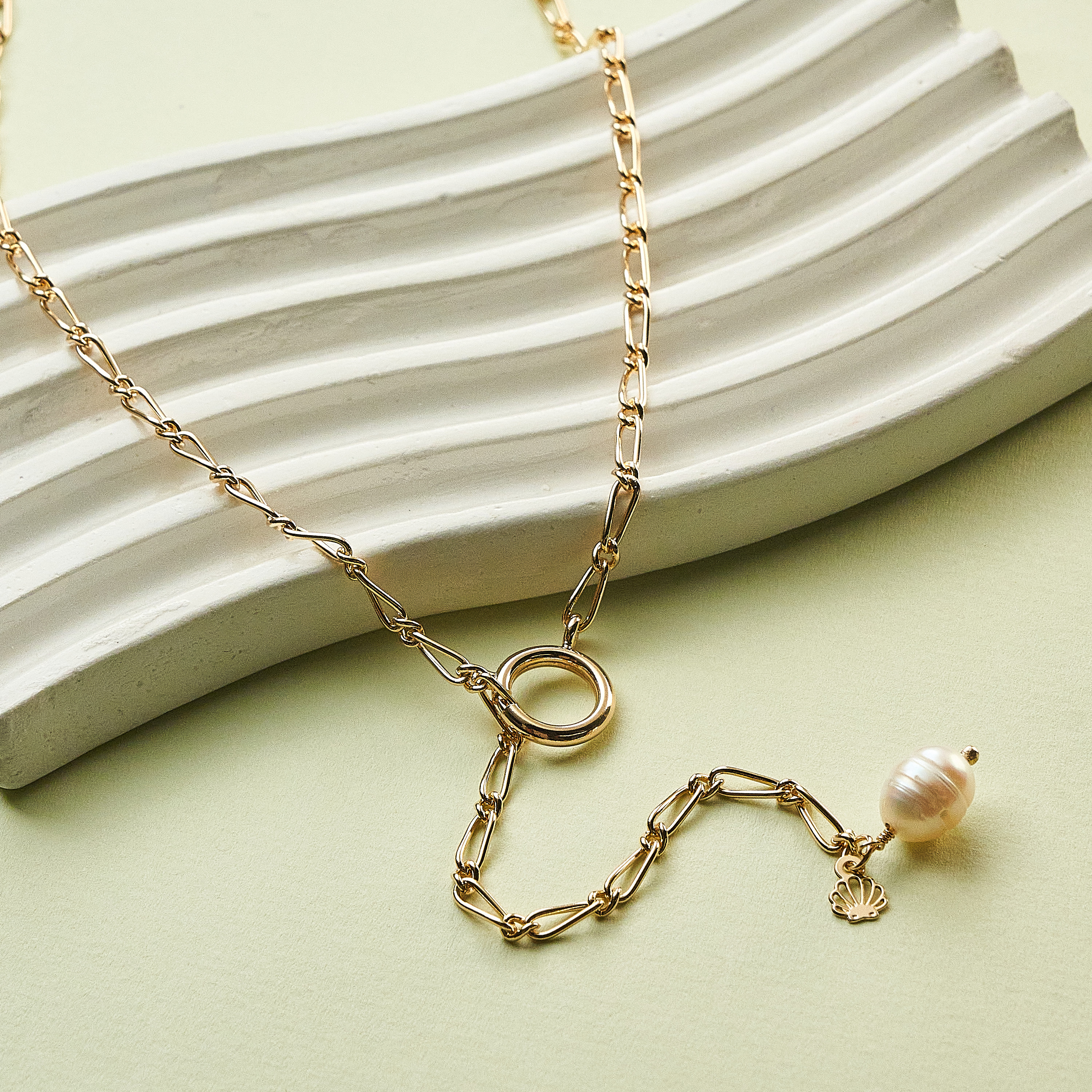 O colar Veridiana é aquela peça coringa ideal para qualquer ocasião, além da corrente super charmosa , o diferencial está no fecho boia frontal, possibilitando diversas formas de usar. Na ponta possui o pingente de pérola natural circular riscada que dá um toque especial na produção. Peça banhada em ouro 18k, com verniz antialérgico e níquel free, possui o detalhe nossa concha Una e fecho boia. Pode ter variações no formato e cor da pérola.