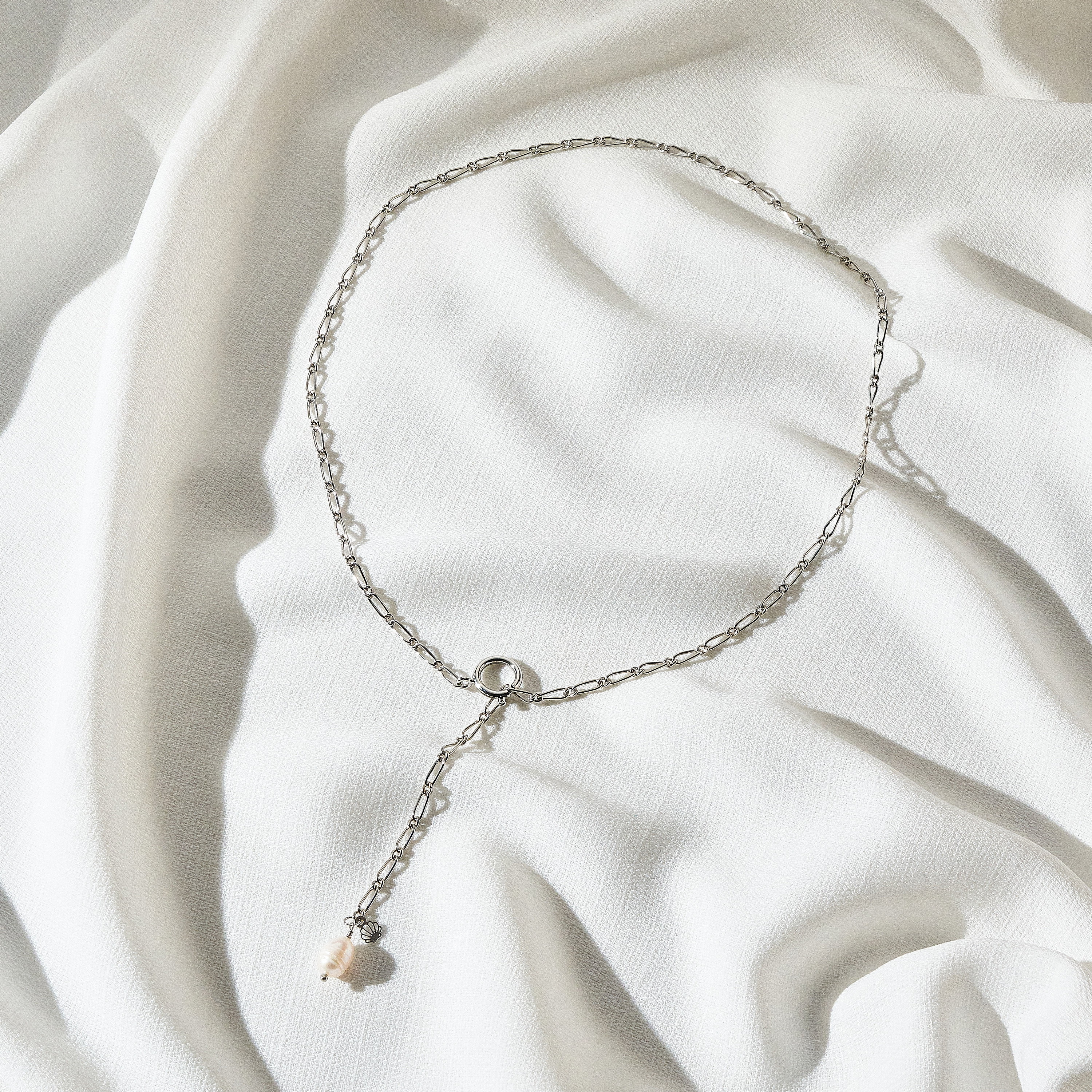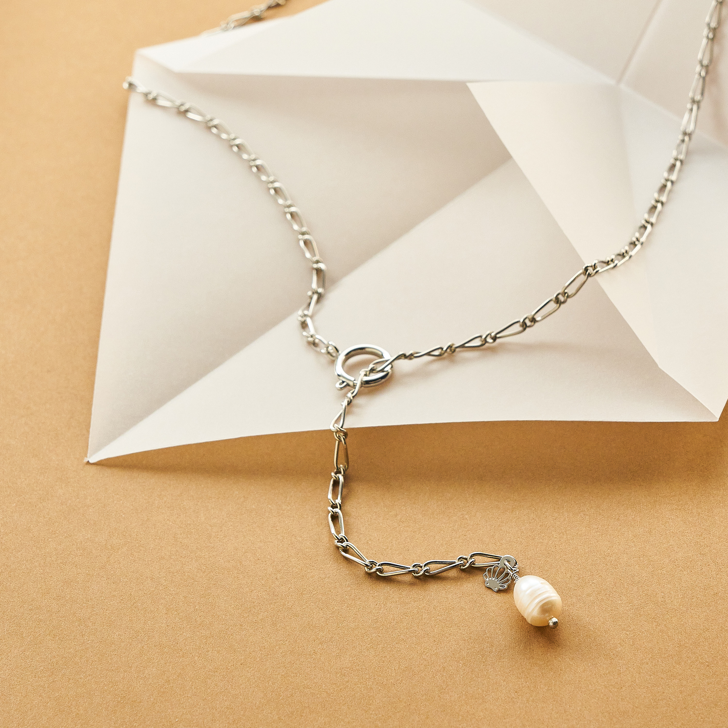 O colar Veridiana é aquela peça coringa ideal para qualquer ocasião, além da corrente super charmosa , o diferencial está no fecho boia frontal, possibilitando diversas formas de usar. Na ponta possui o pingente de pérola natural circular riscada que dá um toque especial na produção. Peça banhada em ródio branco, com verniz antialérgico e níquel free, possui o detalhe nossa concha Una e fecho boia. Pode ter variações no formato e cor da pérola.