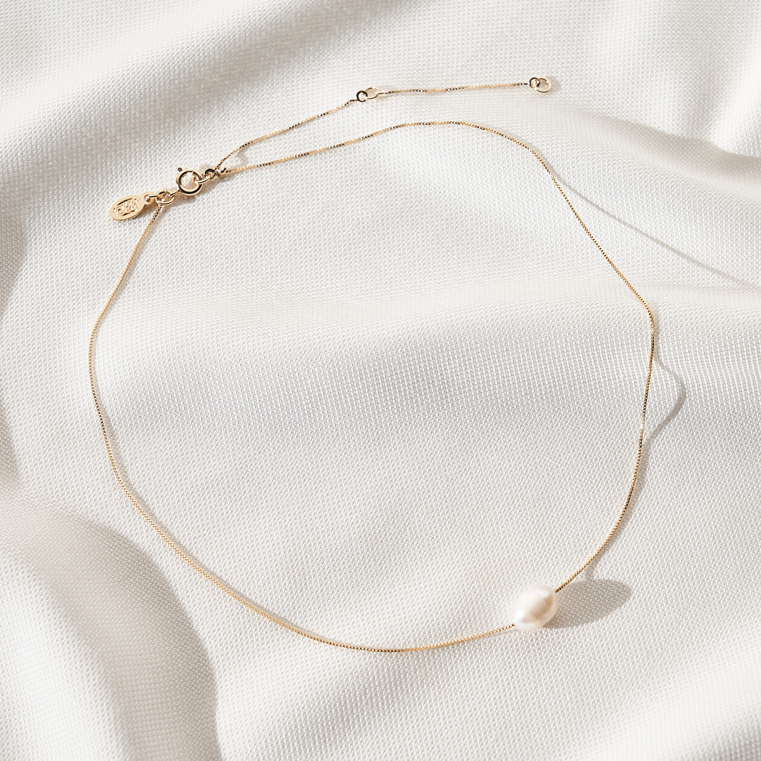 Colar Nia delicado de corrente veneziana finíssima com detalhe de pérola barroca de água doce. Detalhe de Mini placa Una e Ps 139:14 e fecho redondo. Extensor em 3 medidas. Banhado em ouro 18k, com verniz antialérgico e níquel free. Pode ter variações no formato e cor da pérola.