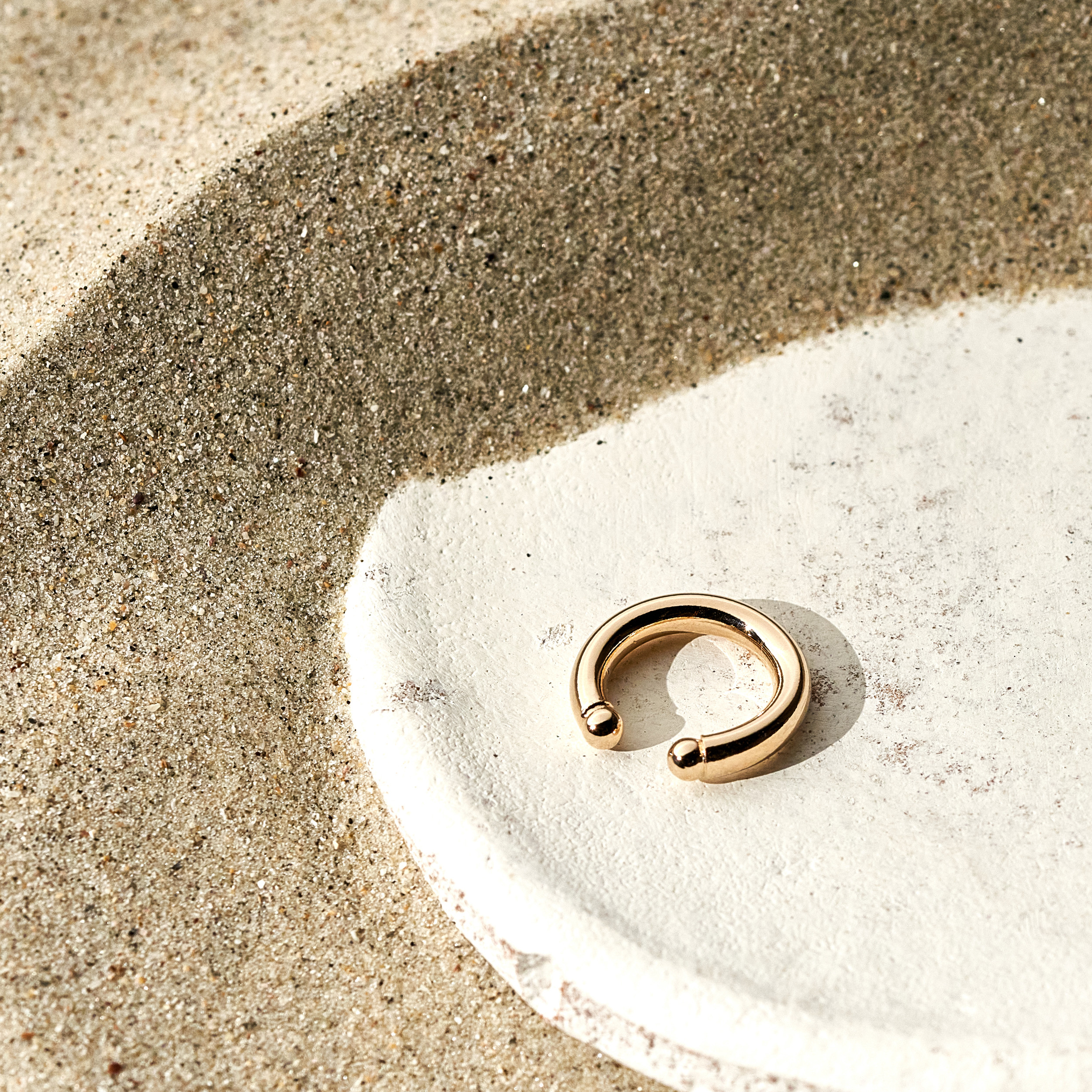 O piercing Sian é um modelo de encaixe, composto por um cilindro de diâmetro moderado e pequenas semiesferas em suas pontas. Os piercings de encaixe são conhecidos por sua praticidade, pois não é preciso ter furo na orelha para usá-los. Peça banhada em ouro 18k, recebeu camada de verniz antialérgico e não possui níquel na composição.