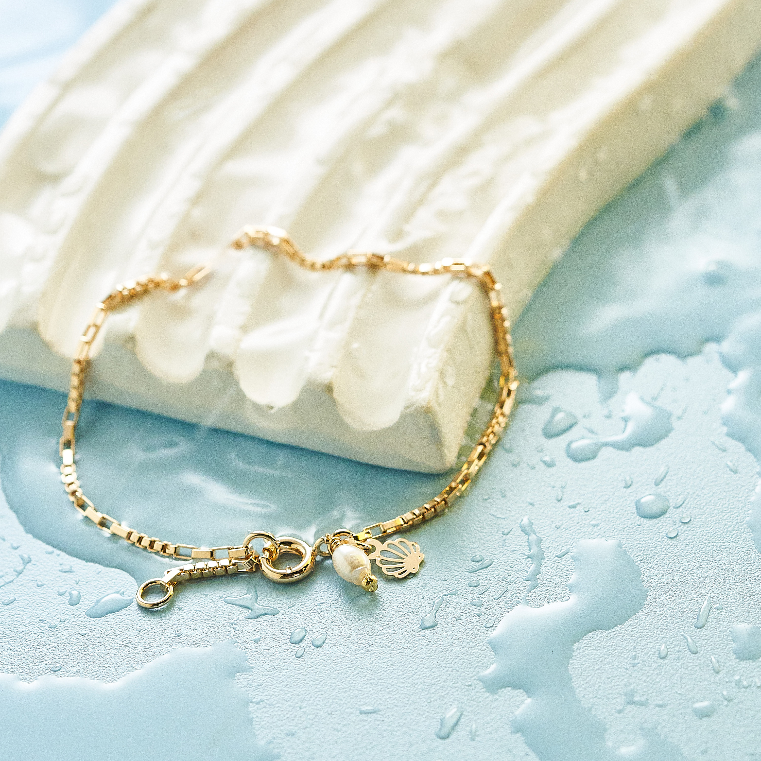 A pulseira Ária é aquela peça coringa que você pode usar em todos os momentos, de corrente de elos retangulares é a peça chave para trazer diferencial no seu mix. Possui fecho boia com detalhe da nossa concha Una e pérola barroca arroz. Extensor em 2 medidas. Banhado em ouro 18k, com verniz antialérgico e níquel free. Pode ter variações no formato e cor da pérola.