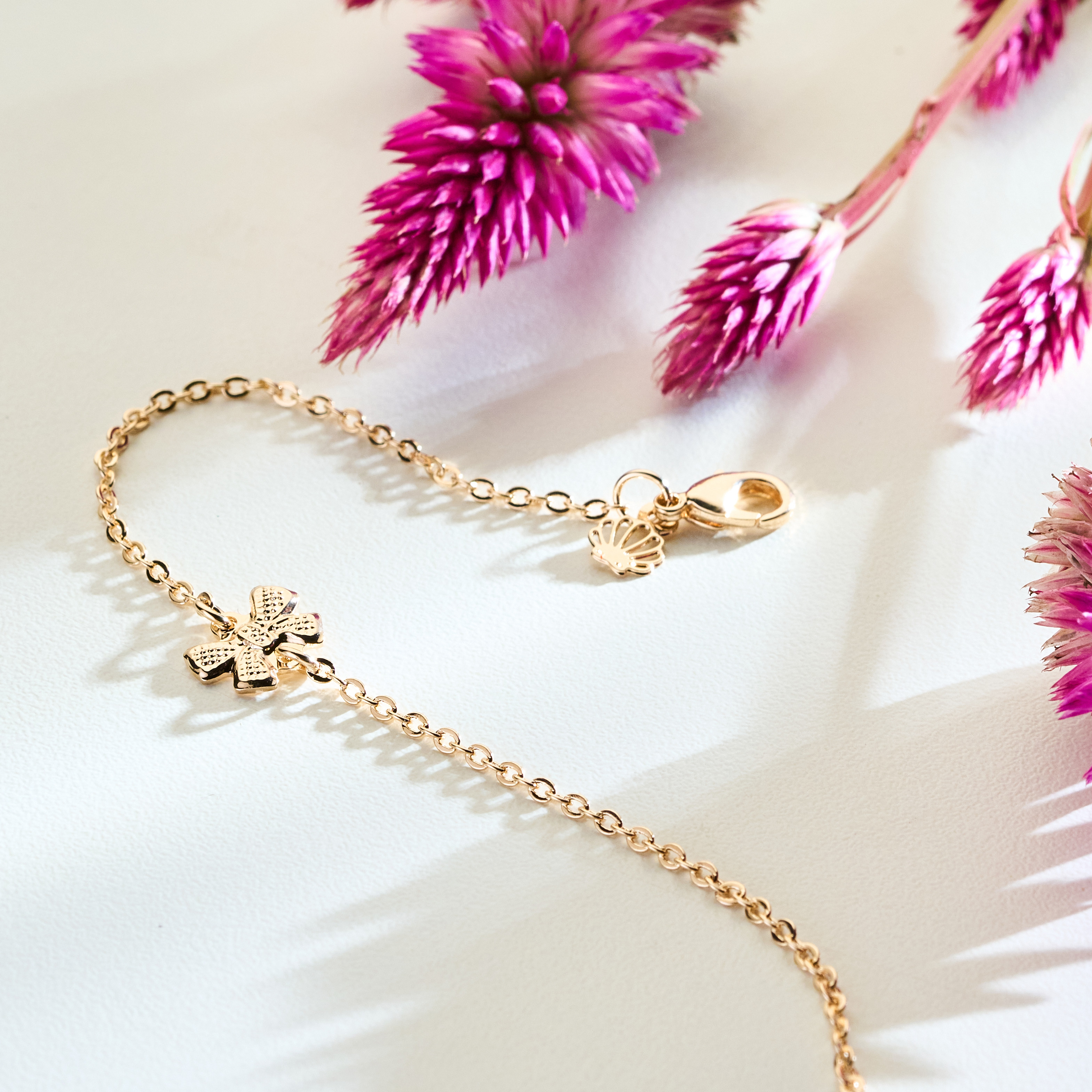 Perfeita para compor produções do dia a dia, a pulseira Daiene é composta pela corrente cadeado e possui um delicado pingente em formato de laço. Possui fecho lagosta com detalhe da nossa concha Una e extensor em duas medidas. Banhado em ouro 18k, com verniz antialérgico e níquel free.